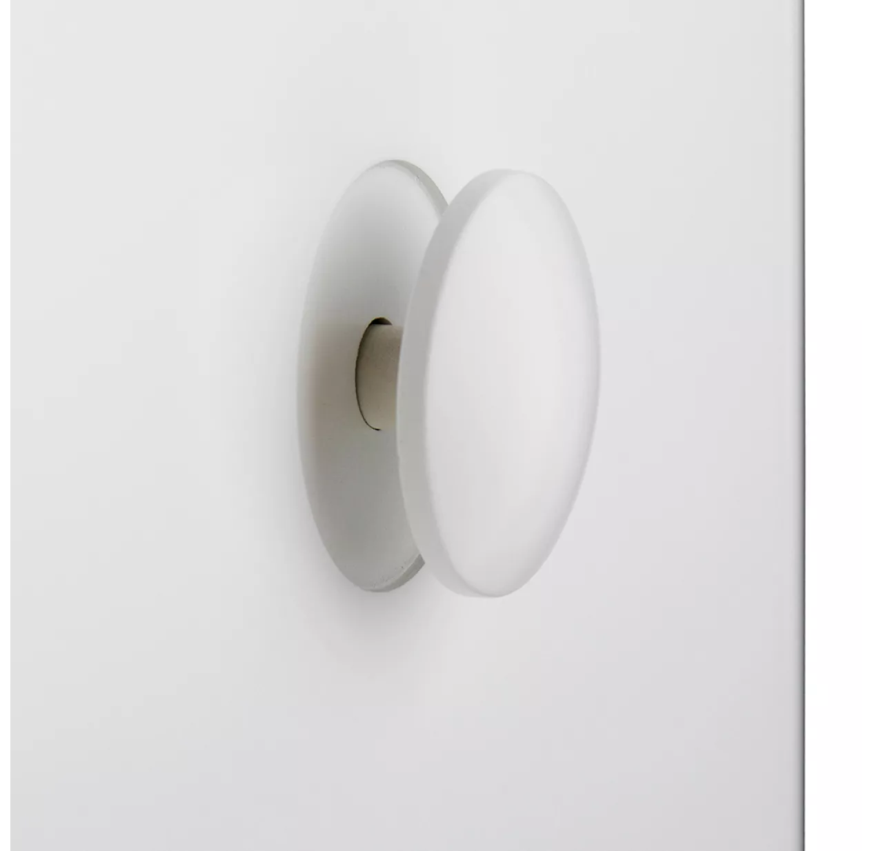 L’armoire est disponible avec les pieds en chêne massif ou en bouleau laqué blanc.