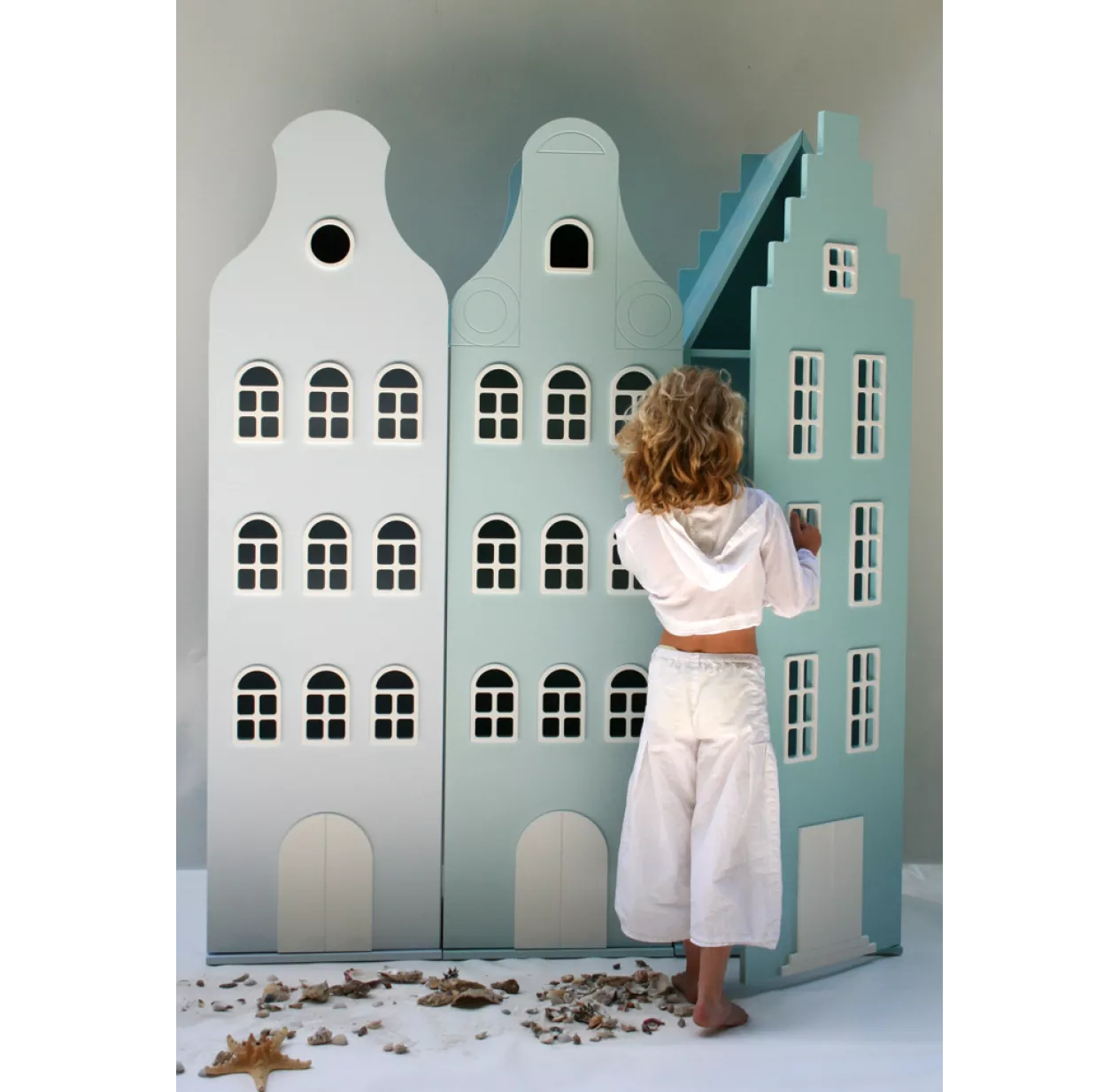 L’armoire Amsterdam inspirée des maisons hollandaises est devenue une icône de la marque néerlandaise Kast Van Een Huis. En janvier 2010, elle a remporté à l’unanimité le prix « Découverte » du Salon Maison & Objet. Nous avons eu un vrai coup de coeur pour cette pièce de mobilier enfant aux très belles finitions, qui se transforme sans encombrement en maison de poupées géante. Un vrai rêve d’enfant !