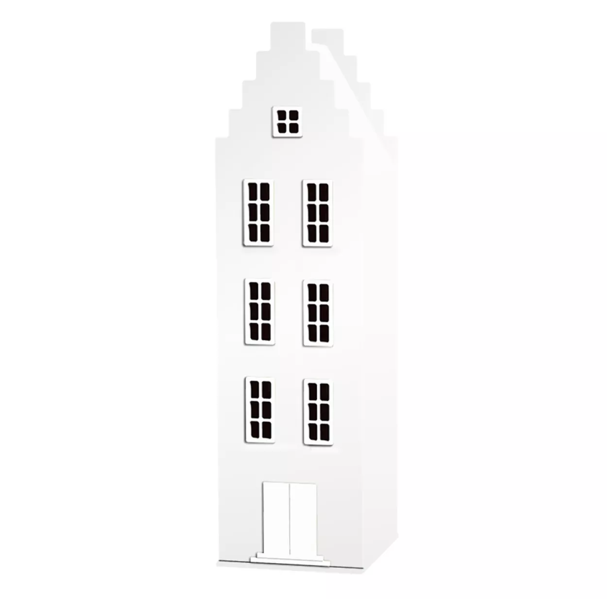 Amsterdam est une armoire en forme de maison hollandaise. Toute en longueur, avec un faible encombrement au sol, elle fait office de bibliothèque, de penderie ou de maison de poupĂ©e. AlignĂ©es cĂ´te Ă cĂ´te, ces maisons colorĂ©es peuvent aussi former une cloison de sĂ©paration pour la chambre de vos enfants. Nous, les Enfants du Design, on a craquĂ© dessus la première fois qu’on l’a vue. C’est un très bel objet qui a en plus le mĂ©rite d’ĂŞtre pratique, ludique, poĂ©tique… Si on avait demandĂ© Ă un enfant de dessiner une armoire pour sa chambre, peut-ĂŞtre mĂŞme qu’il aurait dessinĂ© celle-lĂ .