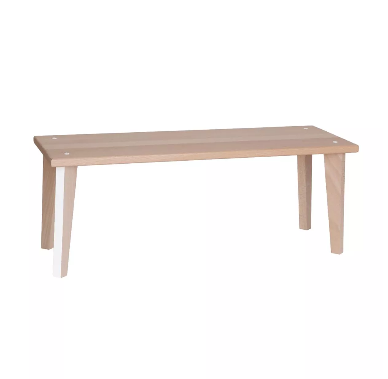 Banc pour enfant en hêtre massif. Sa robustesse permet de recevoir non seulement un ou 2 enfants mais aussi de permettre à un parent de s’assoir à côté de l’enfant ! Il pourra aussi trouver sa place dans une entrée ou en bout de lit. 1 face de pied est peinte. Plusieurs coloris au choix.