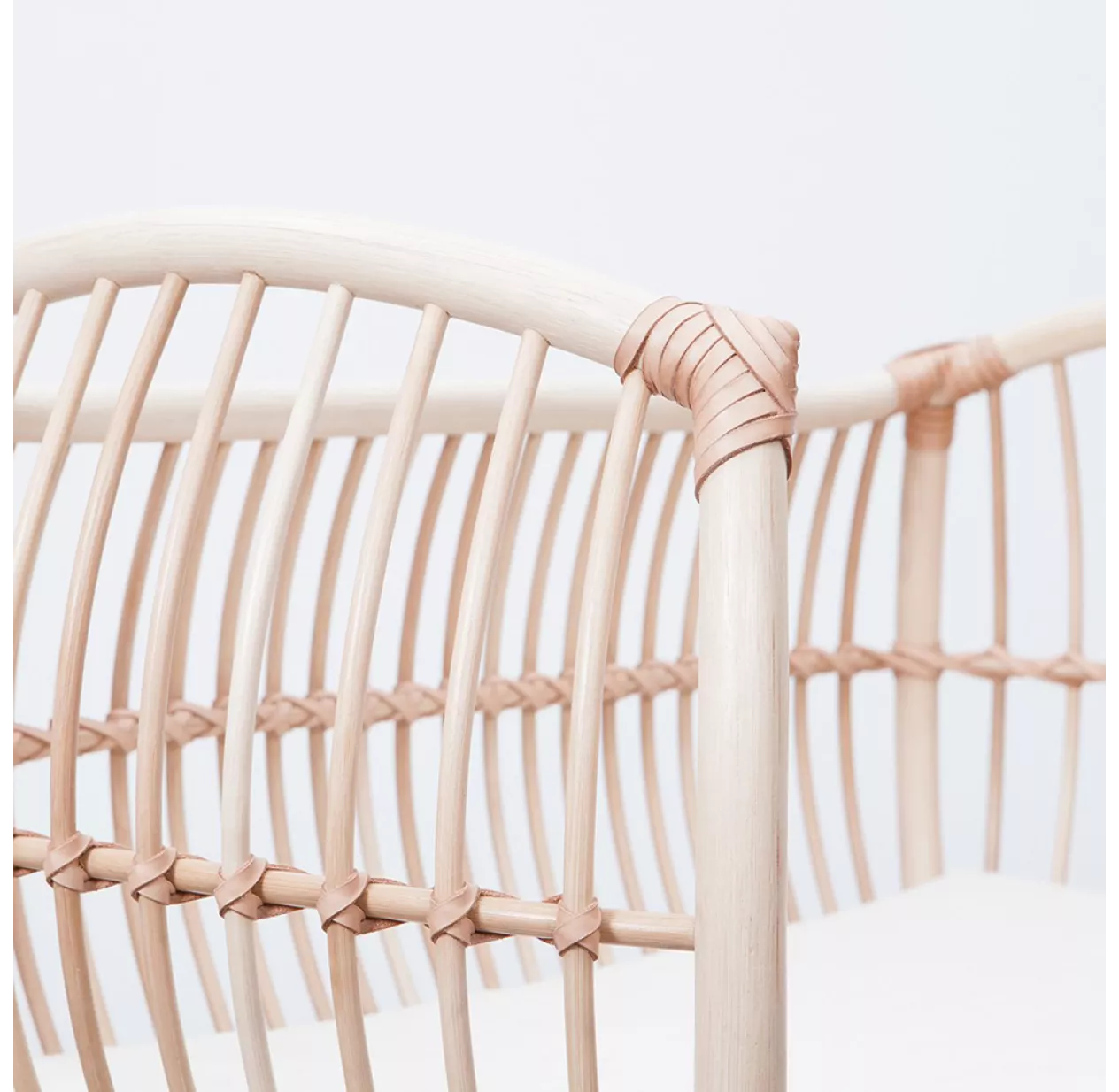 Bermbach Handcrafted s’attache à produire des pièces de mobilier durables et de qualité, aussi naturelles que possible. Le rotin des lits Bermbach est ramassé et tissé sur place. Son utilisation dans la fabrication de mobilier permet de réduire celle du bois et contribue à la conservation des ressources forestières. Les liens de tressage du berceau Martha sont réalisés en cuir de vache tanné aux extraits de chêne. Notez que le cuir à tannage végétal est plus respectueux de l’environnement et qu’il n’est pas nocif pour la santé, contrairement au tannage au chrome qui peut produire des allergies. Bermbach est attentif à ce type de détails, ses fondateurs ont à cœur de proposer le plus juste équilibre entre économie et écologie.
