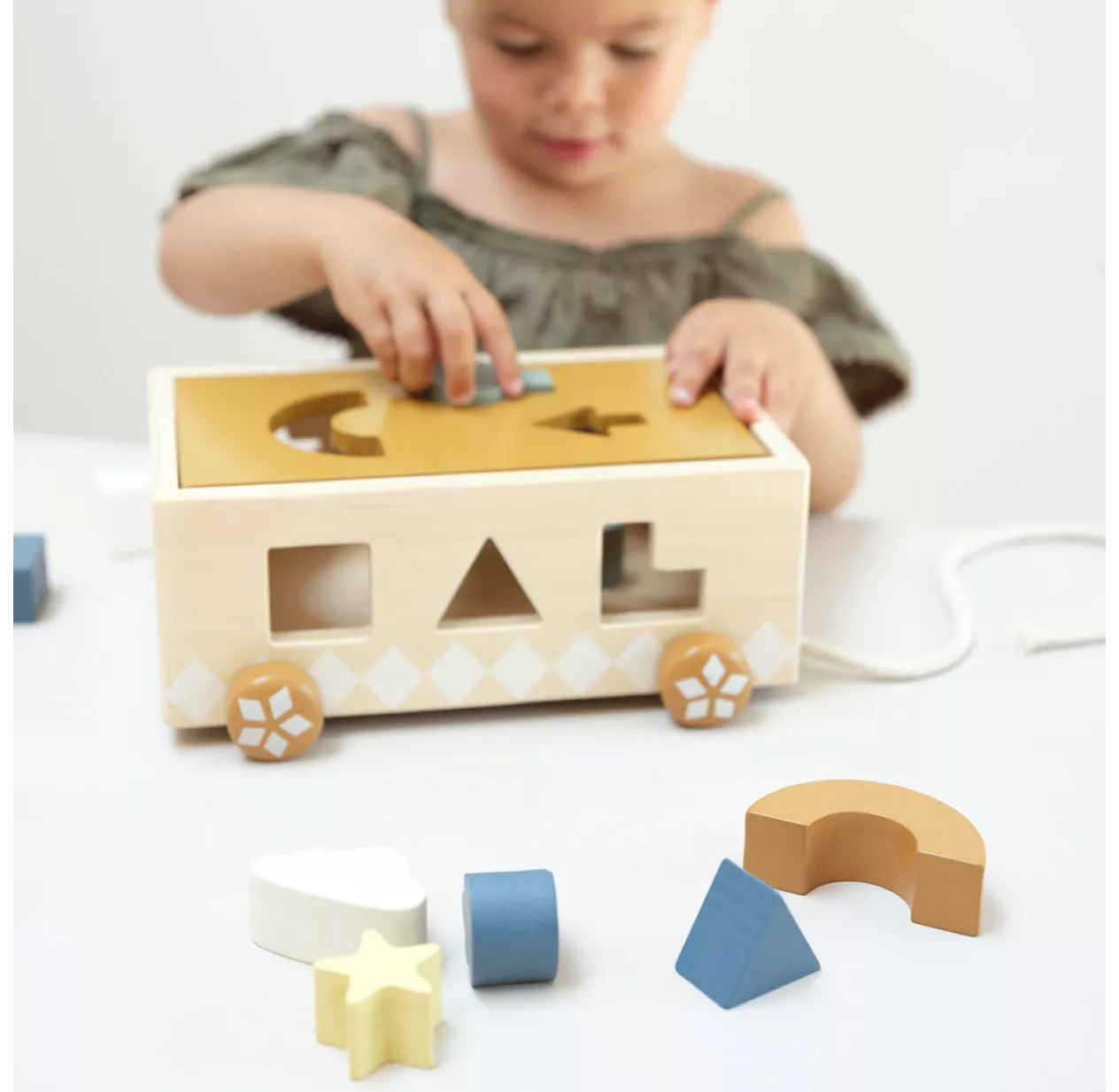Cet adorable chariot à tirer associé à une boîte à formes déco appartient à la toute nouvelle collection de jouets en bois éco-conçus de Fabelab. Il comprend 11 formes de couleurs différentes pour l’éveil des petits dès 18 mois. La boîte à formes est un jeu d’adresse incontournable de bébé, elle stimule la coordination oeil-main, sensibilise aux différentes formes et couleurs tout en s’amusant. Son couvercle d’un joli ocre jaune est amovible. Petit plus ludique, cette boîte à formes est un chariot à tirer ! On craque pour son design graphique et la qualité de ses finitions. Fabriqué en bois de hêtre issu de forêts éco-gérées, ce jouet est également embalé dans une boîte en carton FSC.