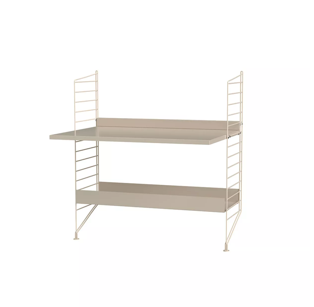 Vous pouvez aussi composer votre bureau STRING dans d’autres finitions: chêne, noyer, gris ou noir laqué…