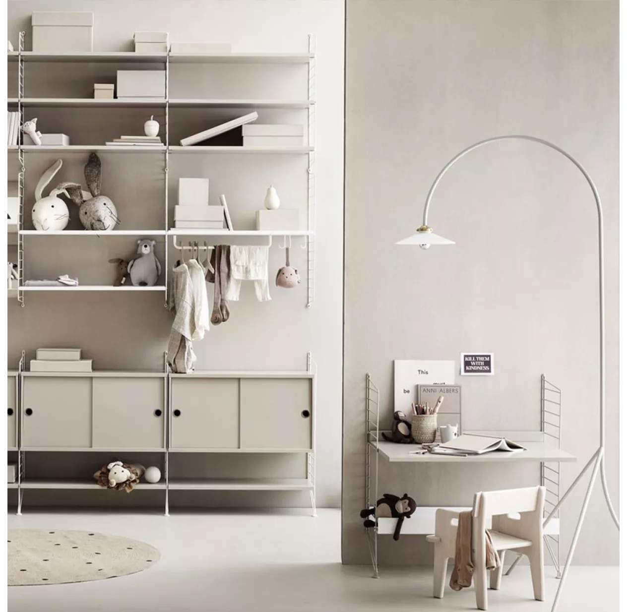 STRING est un système modulable d’étagères murales imaginé par Nisse Strinning en 1949.