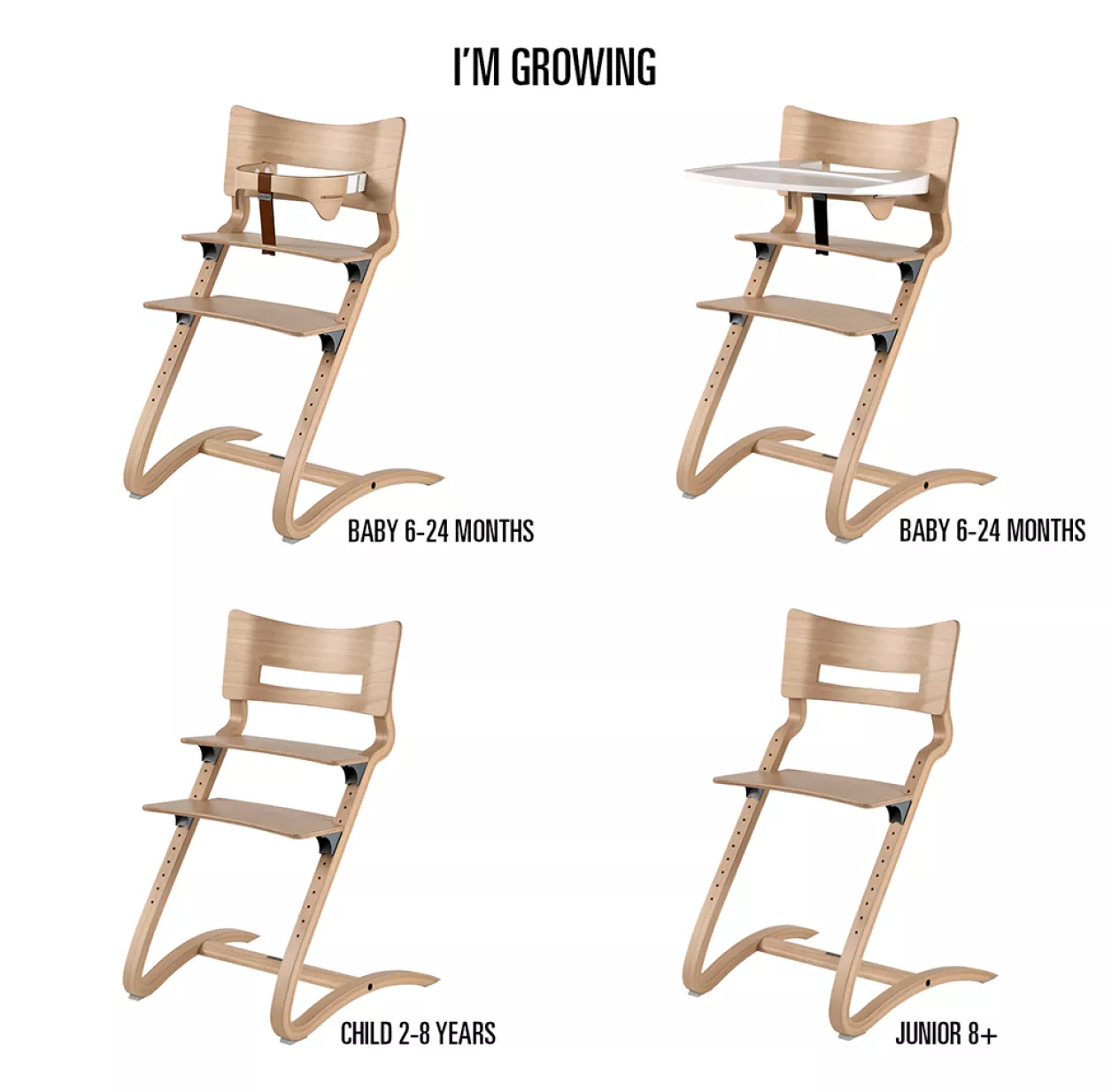 La chaise évolutive Leander accompagne votre bébé de 5-6 mois jusqu’à l’âge adulte. Son assise ainsi que son repose-pieds s’ajustent à la taille de l’enfant au fur et à mesure qu’il grandit pour lui permettre de partager la table de ses parents dès son plus jeune âge. Comme tout le mobilier enfant designé par Stig Leander Nielsen, la chaise haute évolutive Leander est le fruit d’une analyse poussée des besoins de l’enfant, c’est aussi un produit durable qui trouvera sa place dans une chambre d’enfant comme chaise de bureau par exemple.