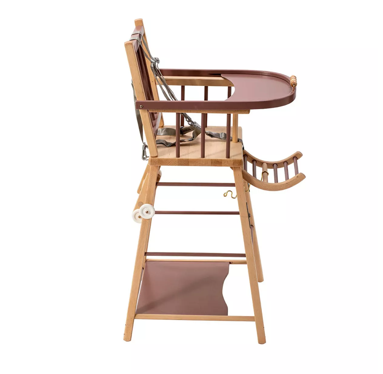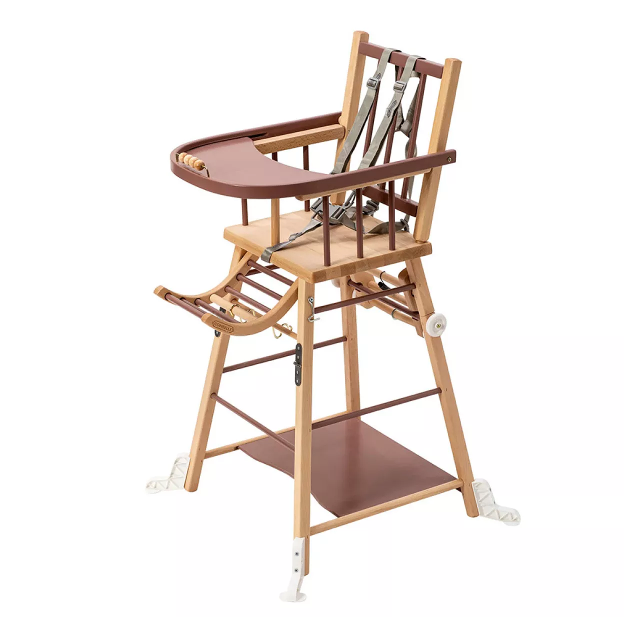 La chaise haute Combelle est livrée avec un harnais de sécurité.