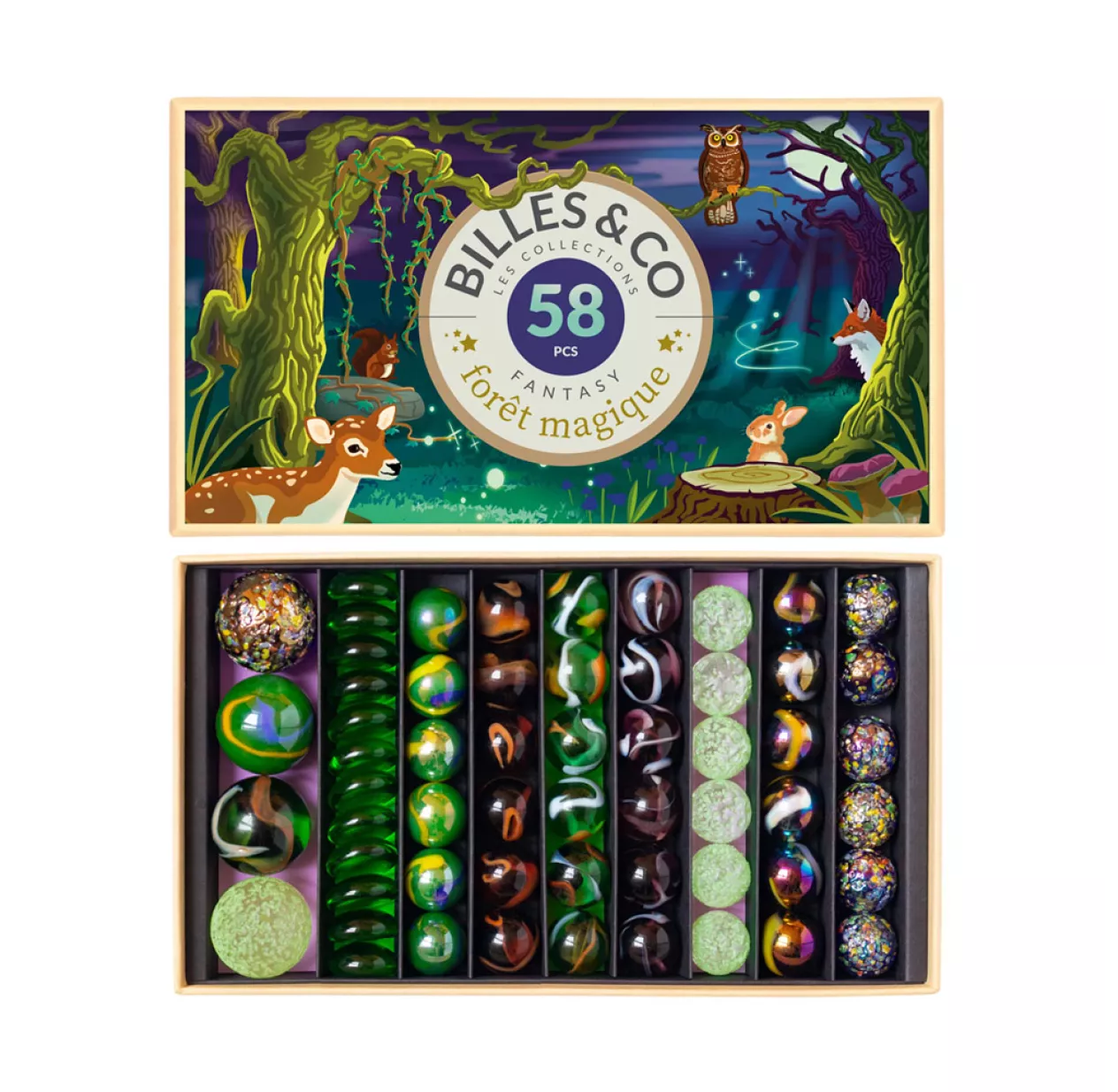 Ce coffret Forêt magique est une invitation à une promenade nocturne dans les bois. Si vous y progressez à pas feutrés, au clair de lune, vous aurez peut être la chance de croiser un des habitants de la forôt. Chut… Quand la magie des billes nous invite à découvrir la magie de la forêt : 58 billes, galets et calots pour une excursion dans la nuit magique, au milieu du balai enchanté des lucioles.