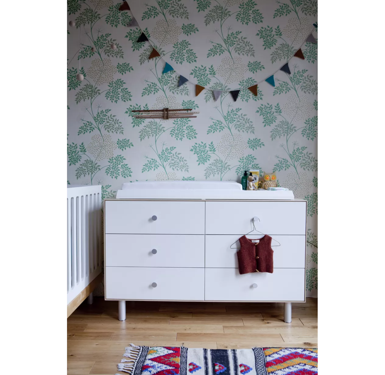 Commode Merlin Classic 6 Tiroirs – Blanc/Noyer