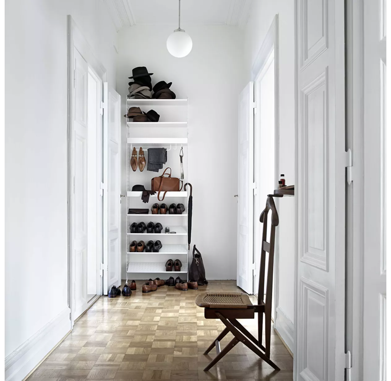 Vous pouvez également rajouter les caissons de rangement, le plateau de bureau, les étagères pour magazines, la table murale pliante et tous les autres rangements modulables String. Vous pouvez aussi mélanger les couleurs.