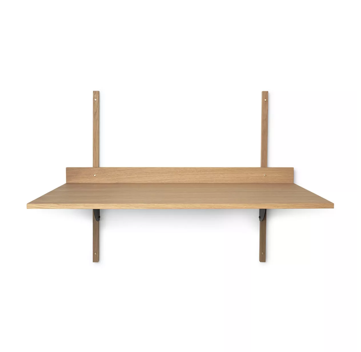 Le système modulaire Sector revisite l’étagère murale du milieu du siècle dans une version moderne et fonctionnelle. Le système mural Sector affirme une simplicité robuste dans un esprit naturel et minimaliste. Cette version du bureau mural Sector associe placage de chêne naturel et laiton noirci. Il est aussi disponible en placage de frêne teinté noir et ses supports en laiton existent également en laiton poli. Le bureau mural Sector de Ferm Living se fixe au mur avec des montants en bois massif et des vis apparentes. Il est idéal pour créer un espace de travail dans une petite chambre, un hall d’entrée ou dans un coin du salon. Il s’associe parfaitement aux étagères Sector qui se déclinent dans les mêmes couleurs et finitions.
