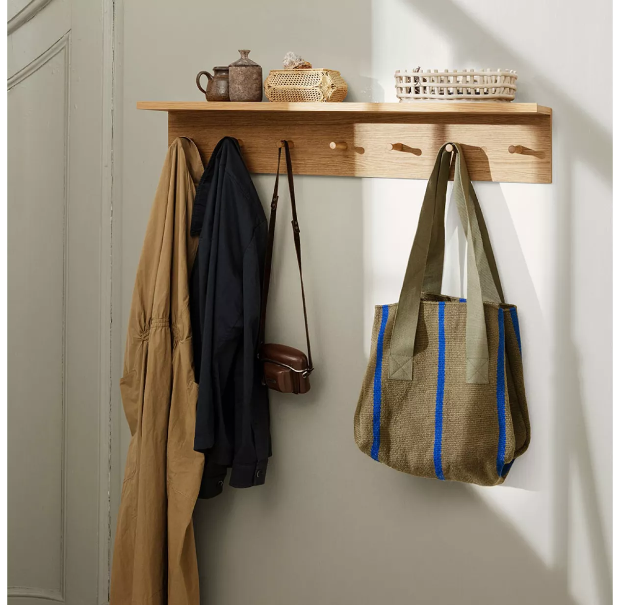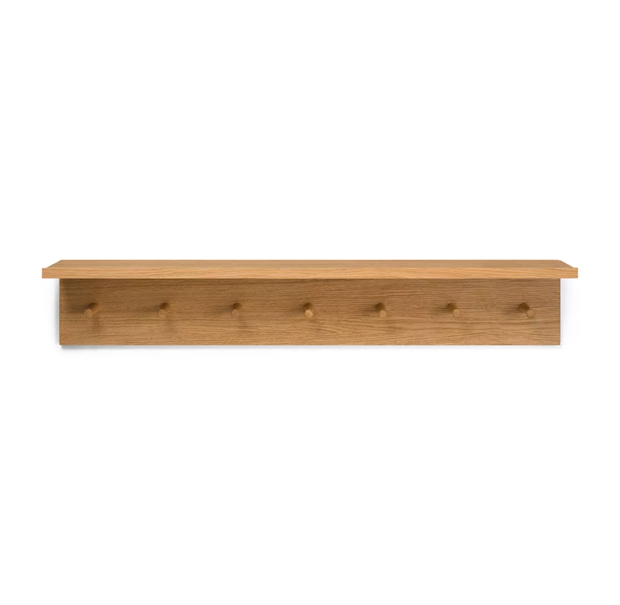 Matière: Etagère : Placage chêne huilé et MDF / Crochets : Chêne massif huilé