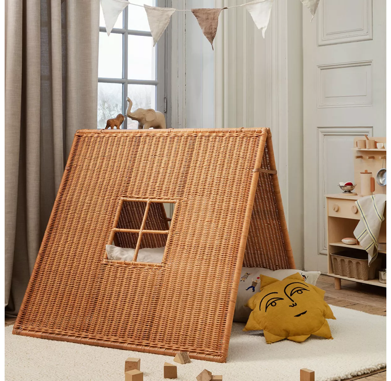 Coup de coeur pour cette icĂ´ne revisitĂ©e des collections Ferm Living Kids ! La tente pliable Ferm Living revĂŞt ici un tressage de rotin naturel fait main. Offrez Ă vos enfants un espace de jeu idĂ©al avec cette magnifique tente pliable. Elle crĂ©era un cocon pour laisser les enfants jouer, s’exprimer et se dĂ©tendre. Elle se replie très facilement et peut ĂŞtre transportĂ©e d’une pièce Ă une autre en toute simplicitĂ©. Une fois repliĂ©e, la tente Ferm Living ne fait que 4 cm d’Ă©paisseur, ce qui lui permet d’ĂŞtre stockĂ©e sans encombrement derrière une armoire ou au fond d’un grand placard.