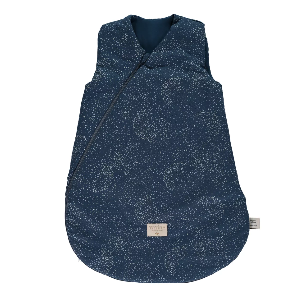 La gigoteuse bébé bleu marine avec son motif bubble doré conviendra à une petite fille comme à un petit garçon. Elle est donc parfaite pour une liste de naissance ou pour offrir lors d’un heureux évènement. La marque Nobodinoz a imaginé du linge de lit et des accessoires de décoration aux détails plus doux, plus épurés et aux couleurs délicates pour la collection Elements. Vous pouvez associer la gigoteuse bébé au linge de lit Nobodinoz. Elle se mariera à merveille au tour de lit bébé bubble Elements de la même couleur ou vous pouvez mélanger les motifs en l’associant au tour de lit bébé stella.