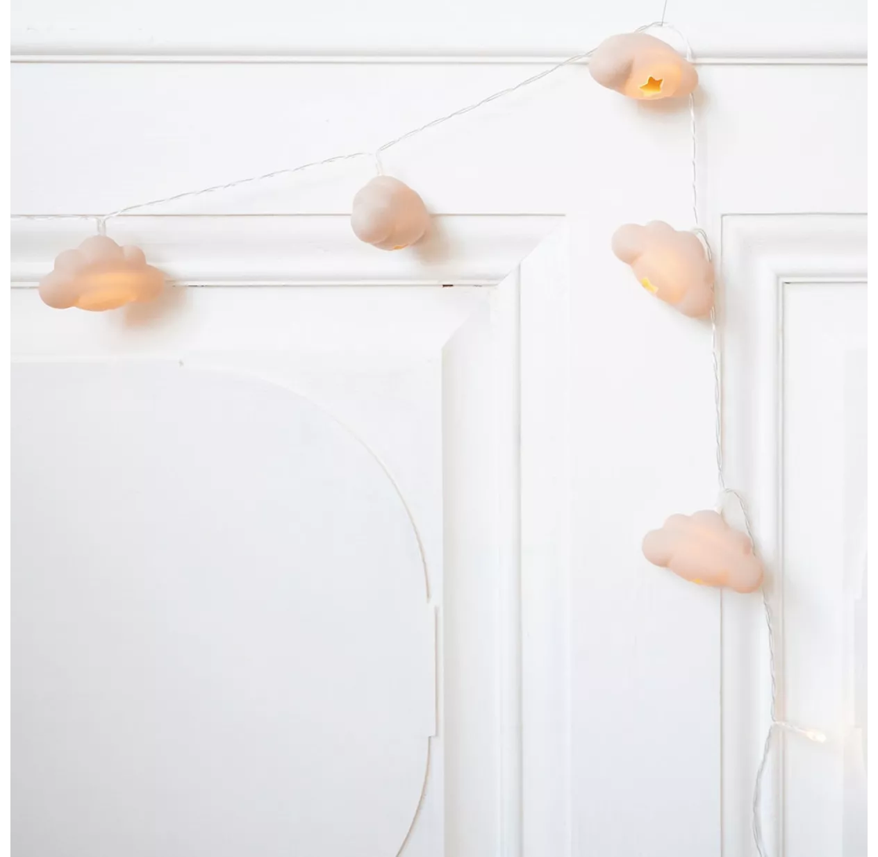 Cette adorable guirlande lumineuse Nuage Konges Sloejd au design rétro et féérique semble tout droit sortie d’une brocante ! Réalisée dans une polyrésine au toucher satiné, chaque nuage est percé d’un trou en forme d’étoile qui laisse passer la lumière. Elle fonctionne avec 3 piles AA non fournies. Un merveilleux cadeau de Noël ou de naissance qui apportera une touche déco unique dans votre chambre enfant.