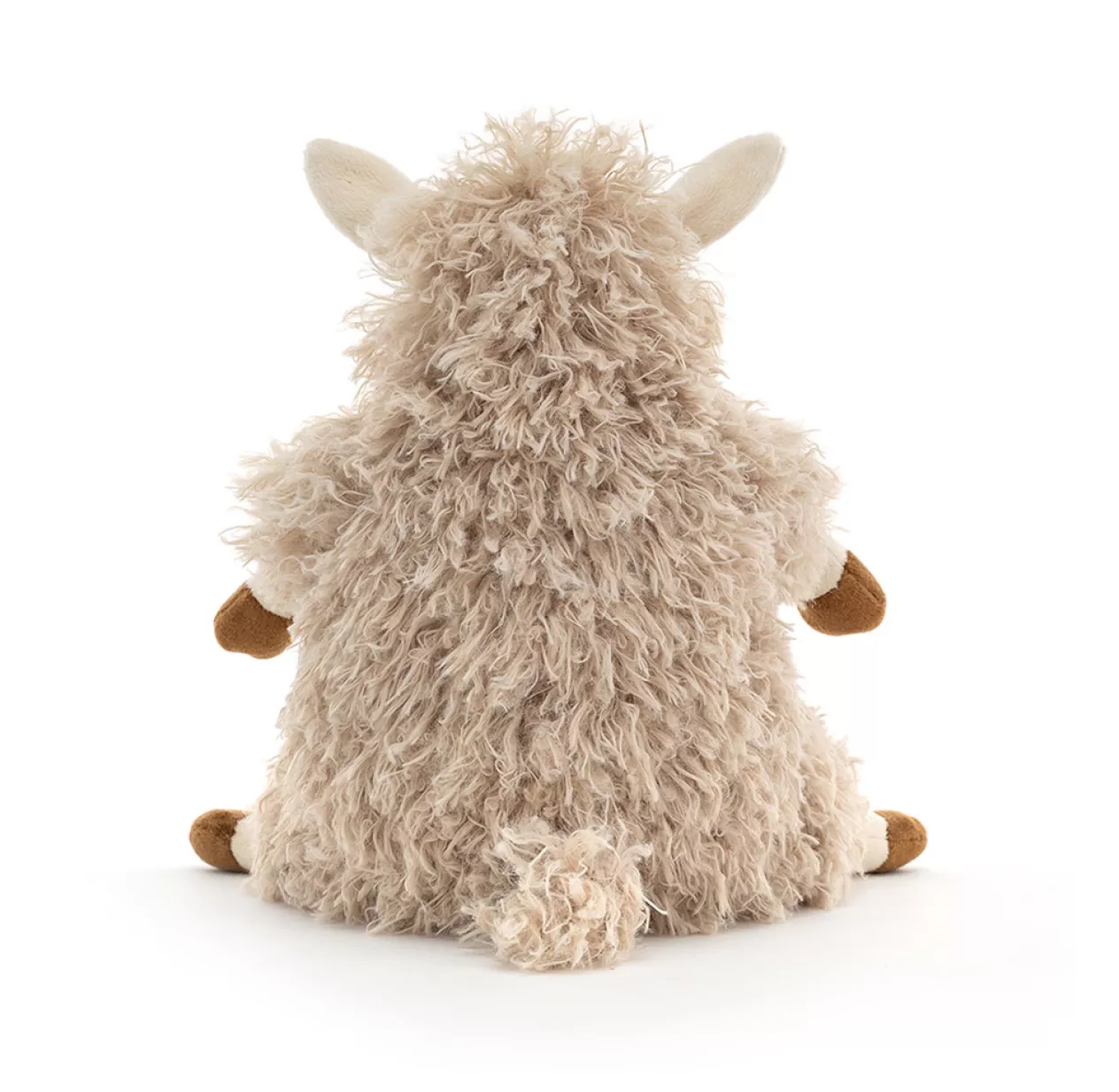 Sherri Sheep fait partie de nos chouchoux, ce petit mouton tout doux qui semble porter le monde sur ses épaules et à croquer ! Son pelage terriblement doux et léger comme un nuage le rend particulièrement réaliste, tandis que ses petits sabots bruns et son arrière-train remplis de micro billes lui donnent une assise et une posture digne d’un dessin animé. Impossible de résister devant sa mine réjouie et son air bonhomme !