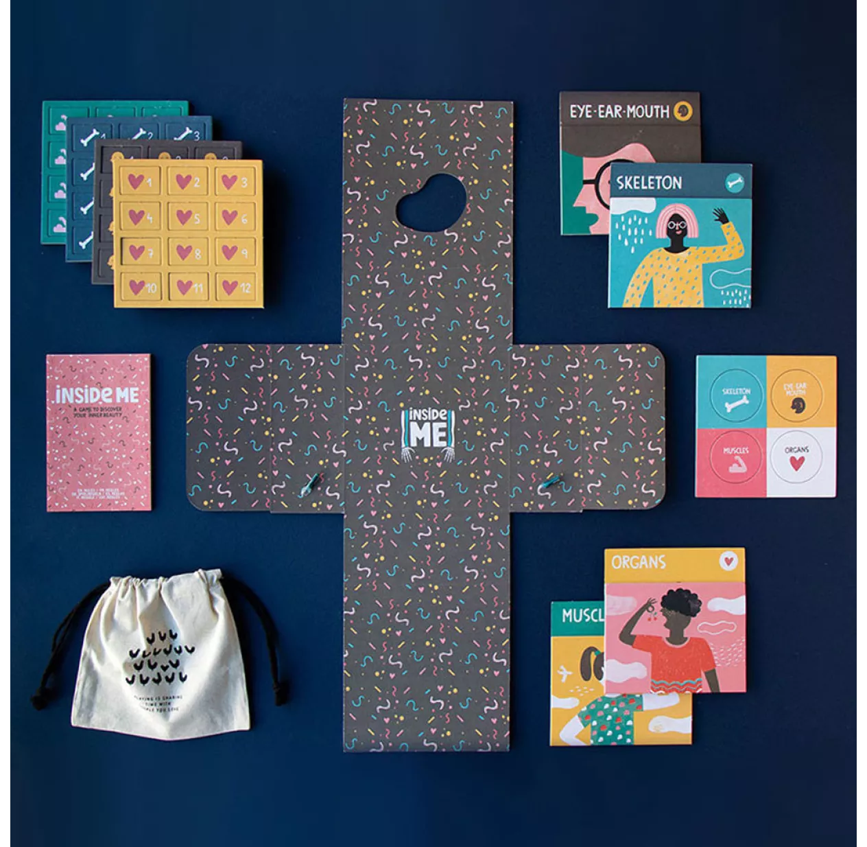 Inside Me de Londji est un jeu d’anatomie pour dĂ©couvrir votre beautĂ© intĂ©rieure et apprendre 96 parties du corps humain de manière simple et amusante ! On place d’abord les 4 plateaux du jeu oĂą sont dessinĂ©es les diffĂ©rentes parties du corps et Ă cĂ´tĂ©, les 4 cercles. Dans le sac en coton inclus dans le jeu, nous glissons le reste des jetons bien mĂ©langĂ©s. La dynamique du jeu est très simple : un joueur sort un jeton du sac et le donne Ă son voisin de droite. Le joueur doit chercher le numĂ©ro indiquĂ© par le jeton sur le plateau correspondant (os, muscle, organe ) et trouver le nom associĂ©. Si vous le connaissez et donnez la bonne rĂ©ponse, vous gagnez ce jeton (parfait !). Si lui et le reste des joueurs ne le savent pas, ils peuvent consulter la rĂ©ponse au verso (s’ils la mĂ©morisent, ils peuvent gagner le point plus tard !). Ce jeton sera alors conservĂ© Ă cĂ´tĂ© du cercle associĂ© Ă sa famille. Avant la fin du tour, nous pouvons tenter de nous souvenir des jetons restants sur la table. Si nous parvenons Ă retrouver les noms, nous remportons plus de points !