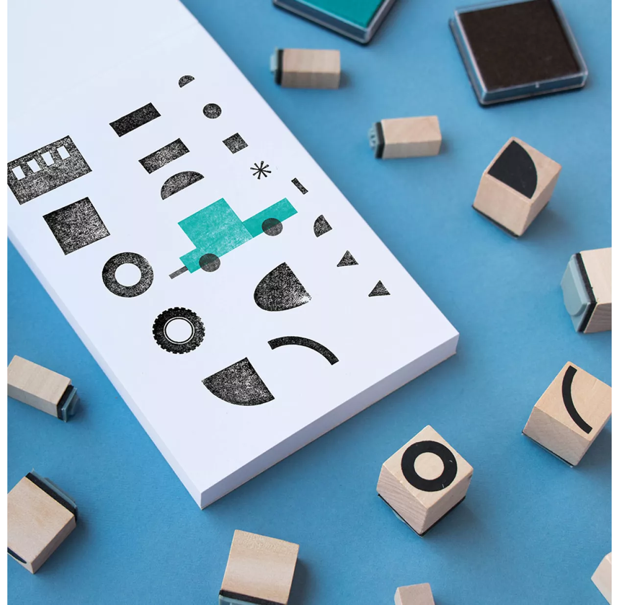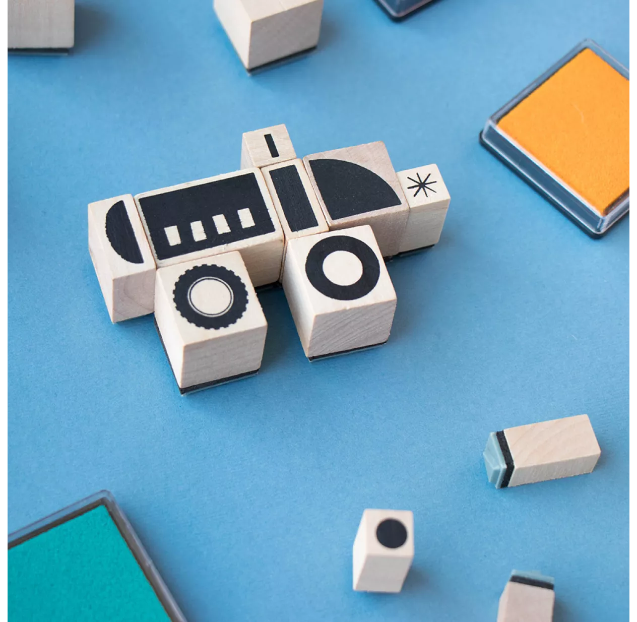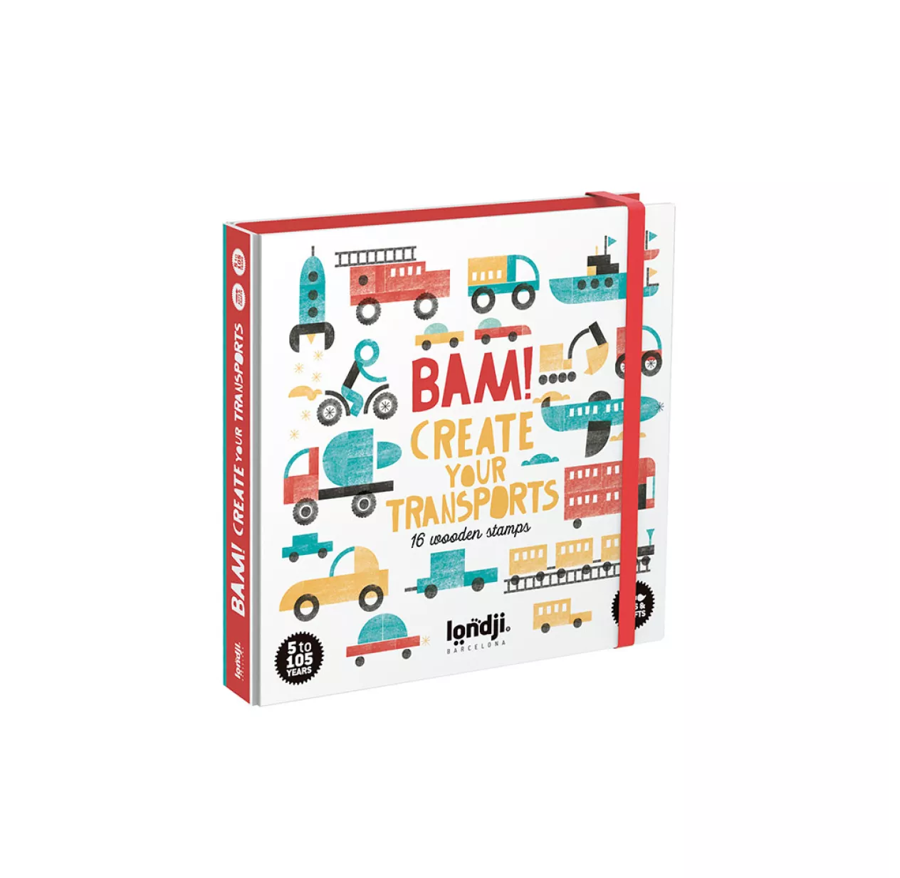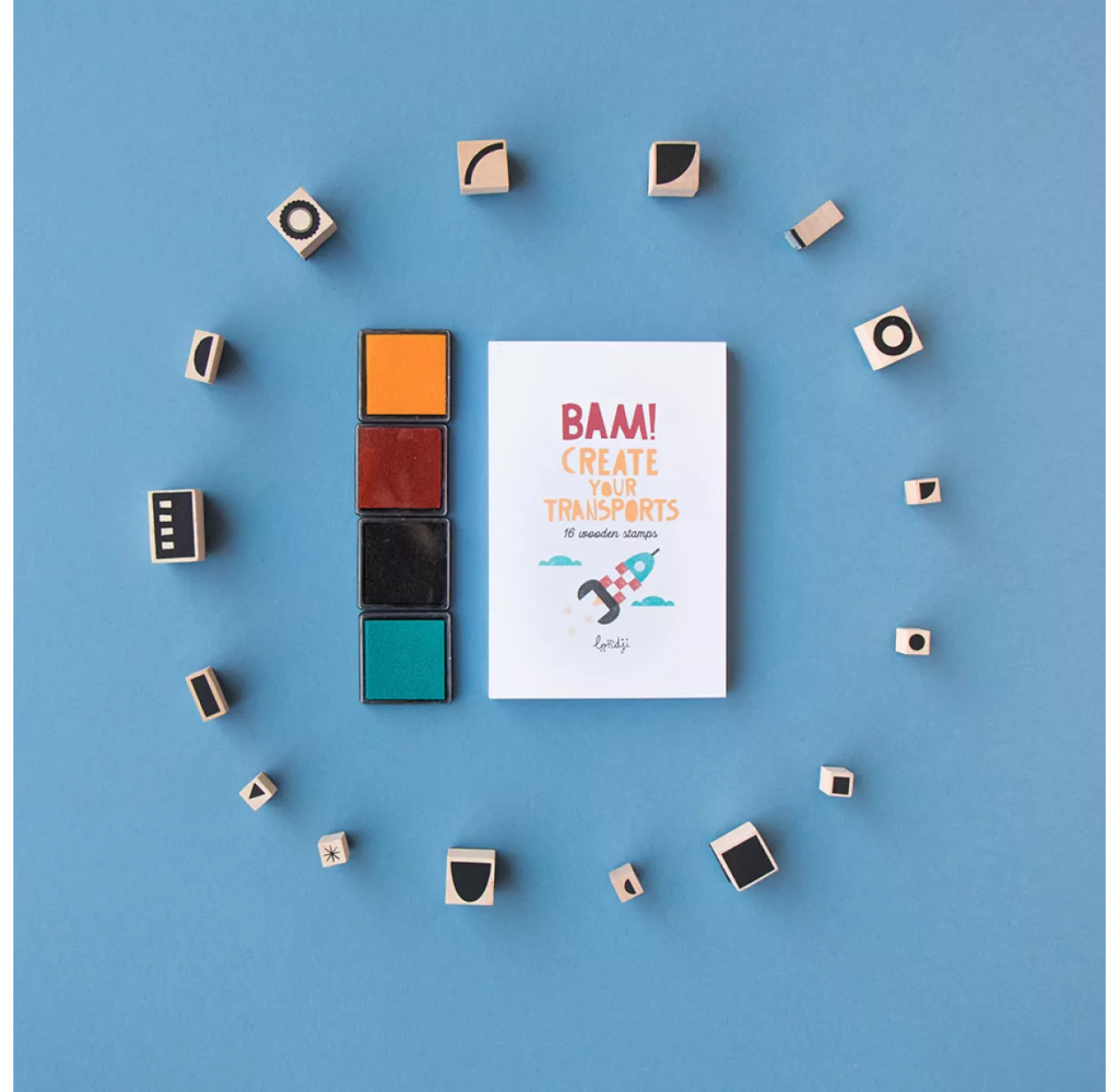 Créez vos propres transports avec des tampons comme vous le souhaitez ! Voitures, avions, fusées, trains… et aussi loin que votre imagination vous emportera ! La boîte comprend 16 tampons en bois avec carnet inclus pour vos créations. Une activité ludique et créative pour les enfants de 5 à 105 ans.