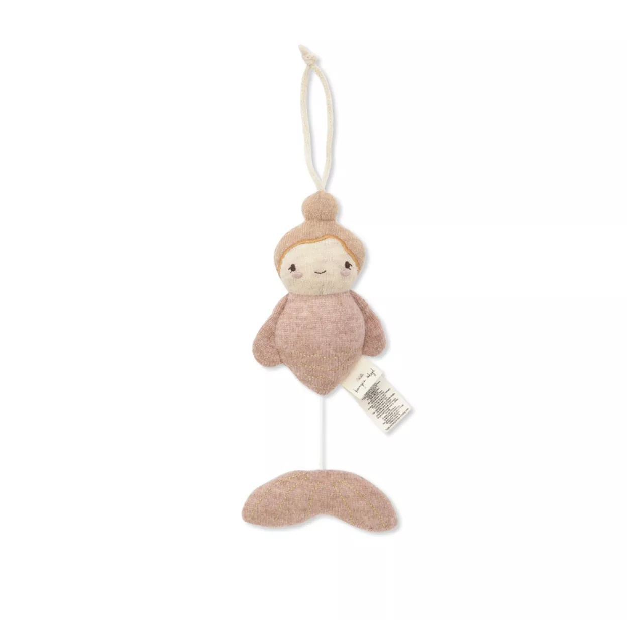 Coup de coeur pour cet adorable mobile musical représentant une petite sirène. Tirez sur sa queue pour déclencher une douce berceuse. Son petit lien vous permet d’accrocher le mobile musical à une arche, une poignée de porte ou aux barreaux du lit. Son design kawaï lui donne un côté très déco et une touche poétique évocatrice de l’univers enchantée des dessins animés de Miyazaki. Un mobile musical tout doux en laine d’agneau et nylon.