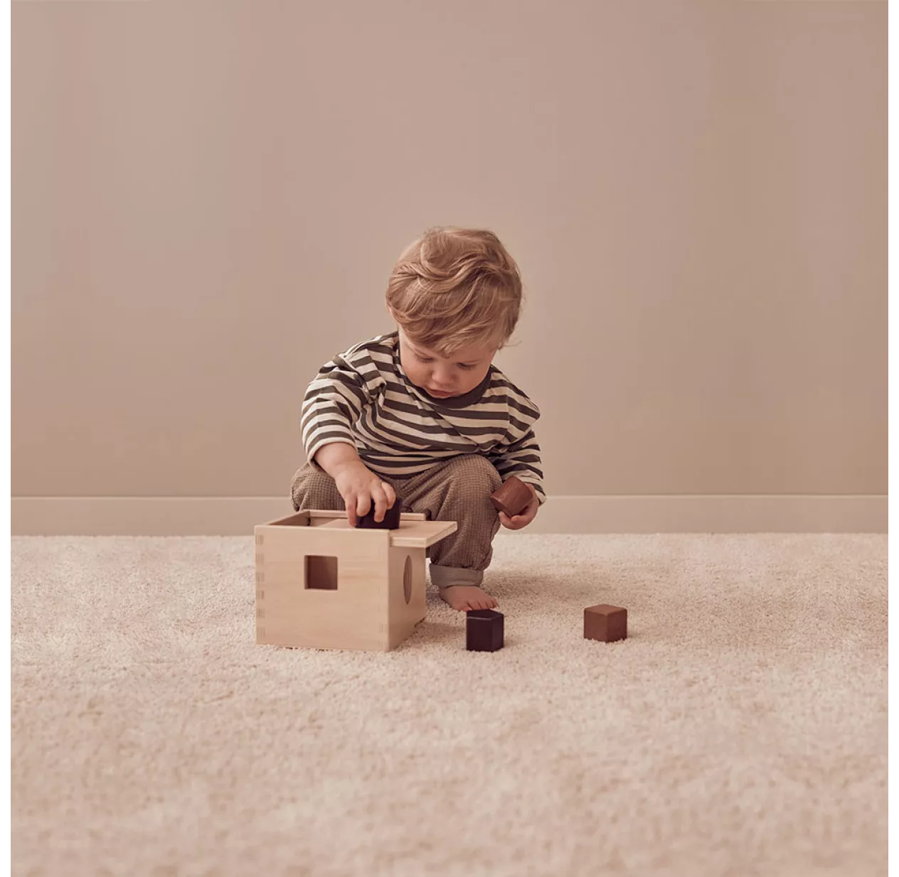 La boîte à formes naturelle Kid’s Concept contient 5 formes différentes: rond, elipse, triangle, hexagone et carré. Chacune trouve sa correspondance sur une face de la boîte. Le jeu de formes développe la motricité et la coordination de votre enfant dès 12 mois. Une fois que votre enfant a placé tous les blocs dans le cube, vous pouvez simplement ouvrir le couvercle et recommencer. Un beau jouet en bois aux teintes naturelles, idéal pour un cadeau de naissance !