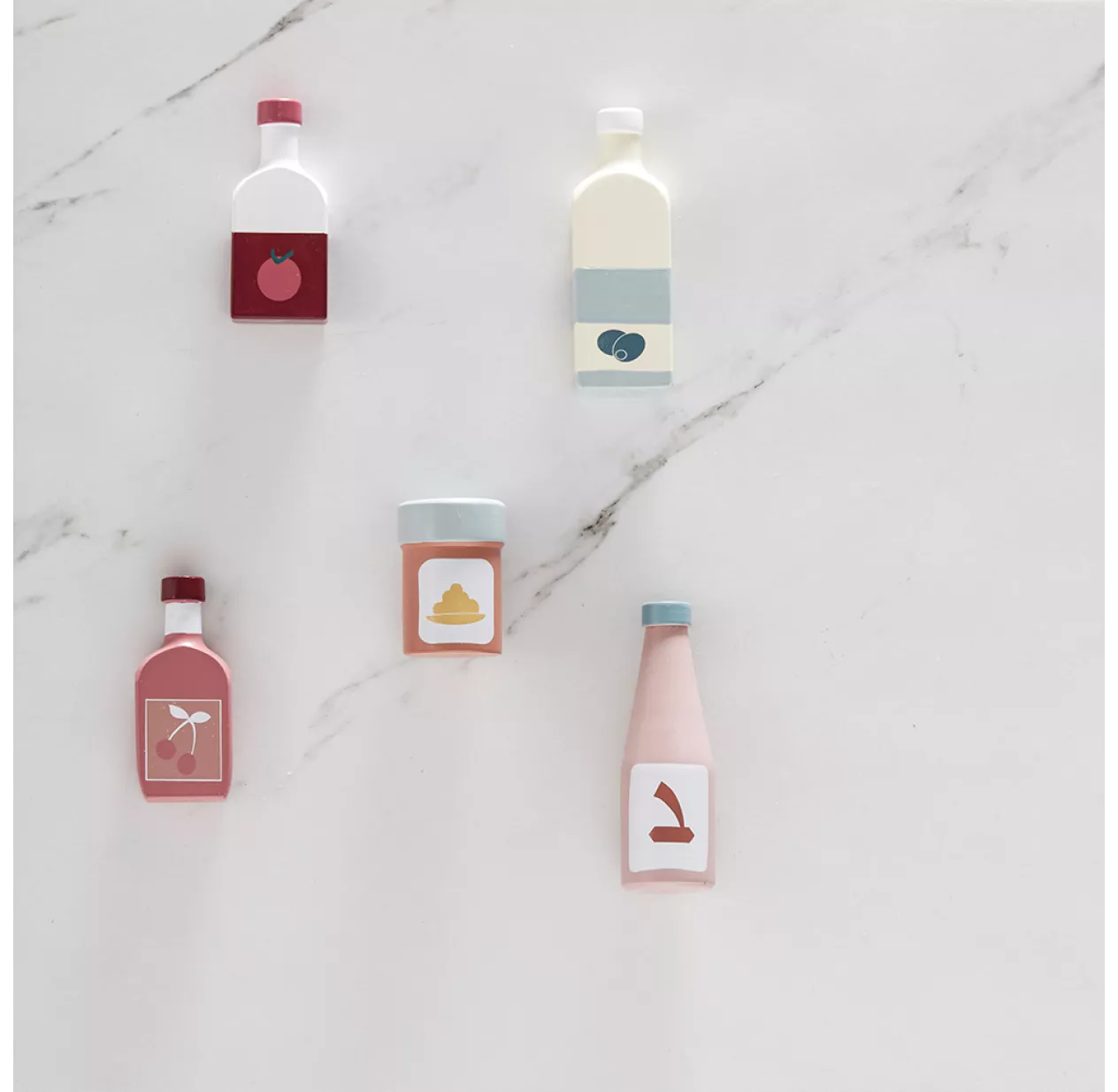 L’ensemble de bouteilles Kid’s Concept se compose d’une bouteille d’huile d’olive, d’une de jus de tomate, d’une sauce soja, d’une bouteille de limonade à la cerise et d’un pot de moutarde. Ce set de bouteilles est idéal pour jouer au marchand ou au cuisinier. Les enfants vont adorer le design sobre et coloré des bouteilles de Kid’s Concept.
