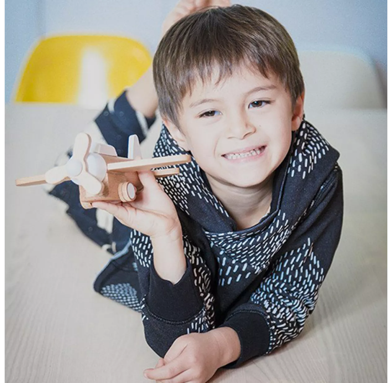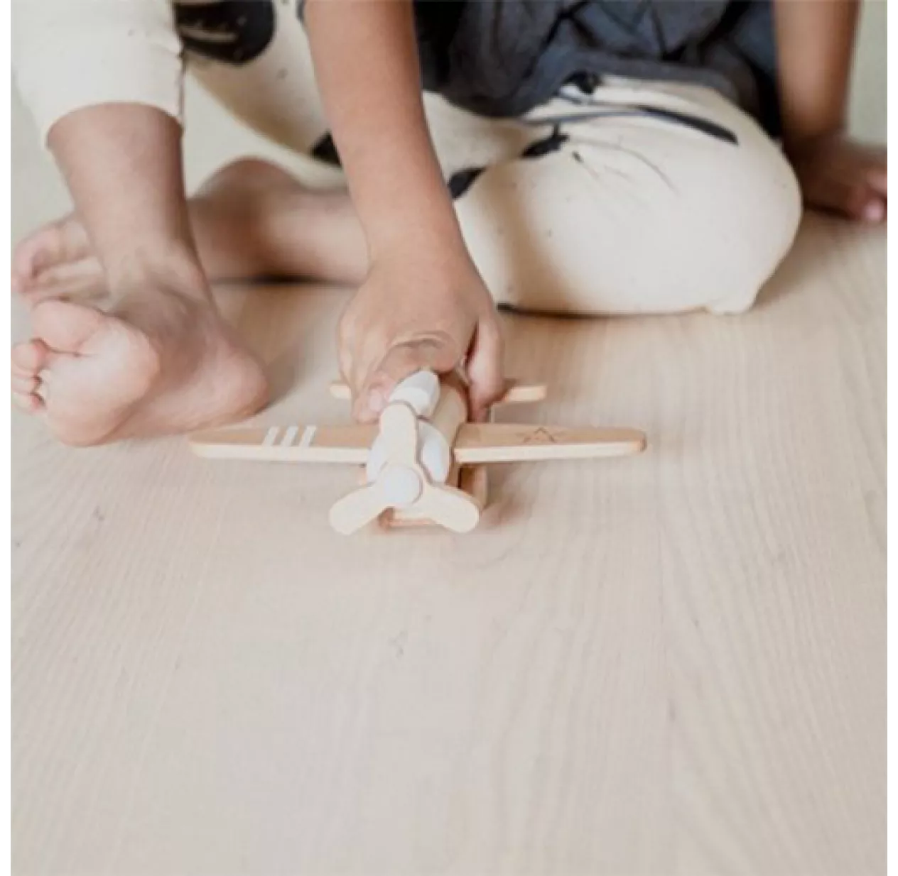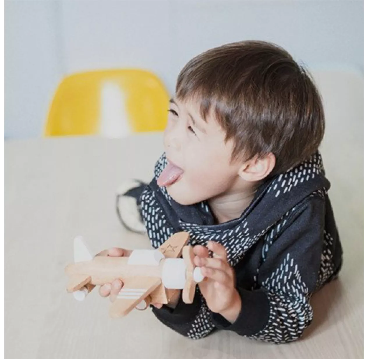 Un avion en hélice en bois avec un moteur à retrofriction pour plus de plaisir ! Kukkia voulait réunir la chaleur du bois, le look moderne d’un avion à réaction et des couleurs vives pour créer les plus beaux rêves. Le moteur à friction en dessous permet à l’avion de se déplacer sur des surfaces planes pour toujours plus de jeu et de plaisir !