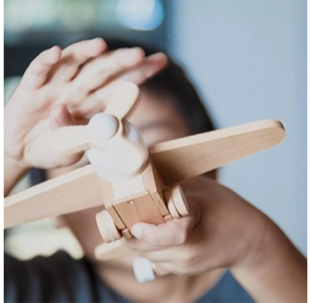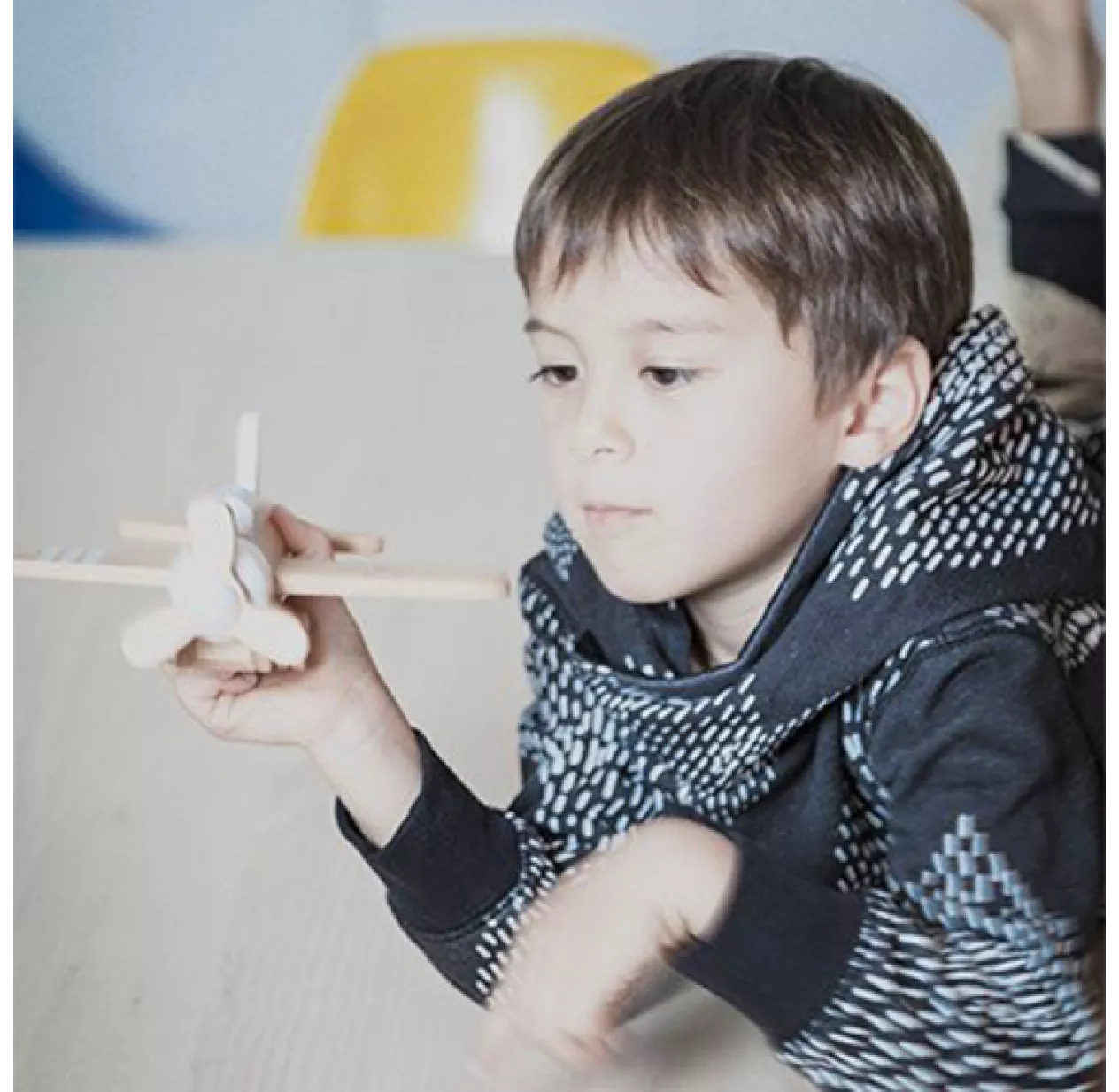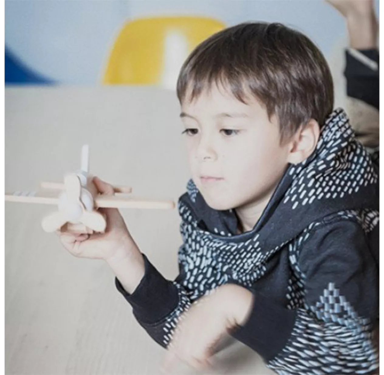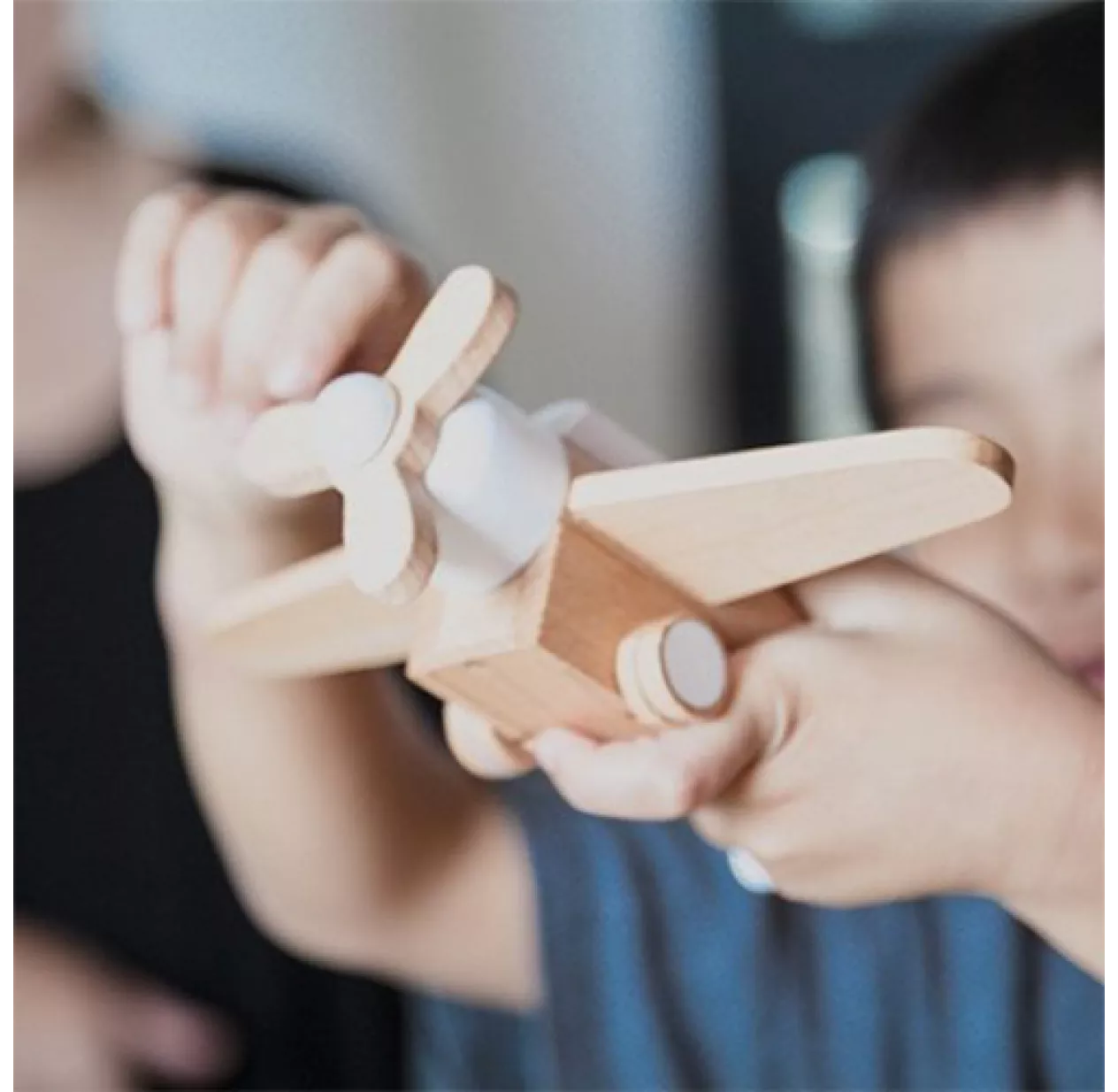 Un avion en hélice en bois avec un moteur à retrofriction pour plus de plaisir ! Kukkia voulait réunir la chaleur du bois, le look moderne d’un avion à réaction et des couleurs vives pour créer les plus beaux rêves. Le moteur à friction en dessous permet à l’avion de se déplacer sur des surfaces planes pour toujours plus de jeu et de plaisir !