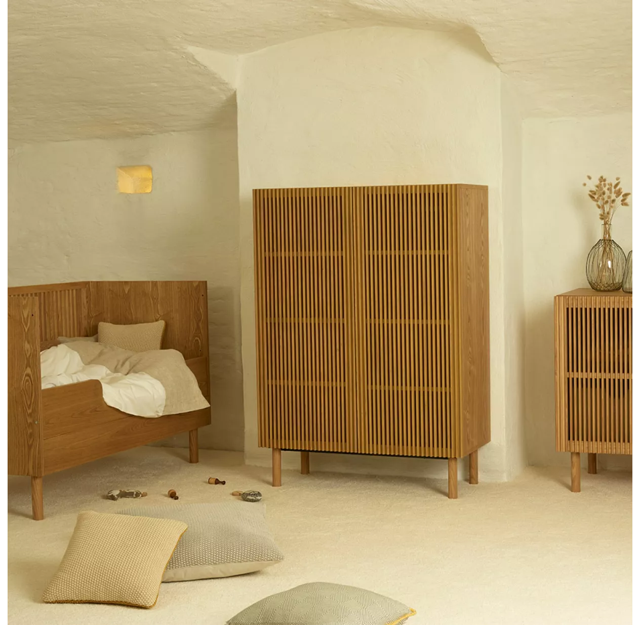 Inspirée par la nature, la collection de mobilier Hai No Ki de Quax offre un design minimaliste, des lignes sobres et des matériaux naturels. La chambre bébé et la chambre enfant se transforment en une oasis de paix, un espace de respiration qui invite à la détente et à apprécier une forme de sobriété.