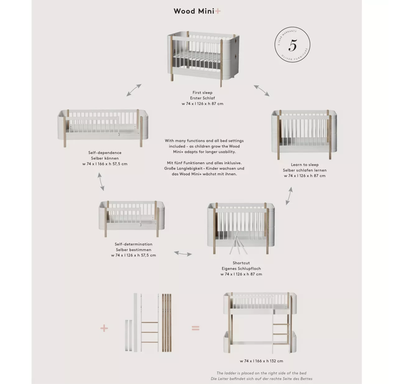 Le lit junior mezzanine mi-haut Wood est également disponible en blanc et chêne.