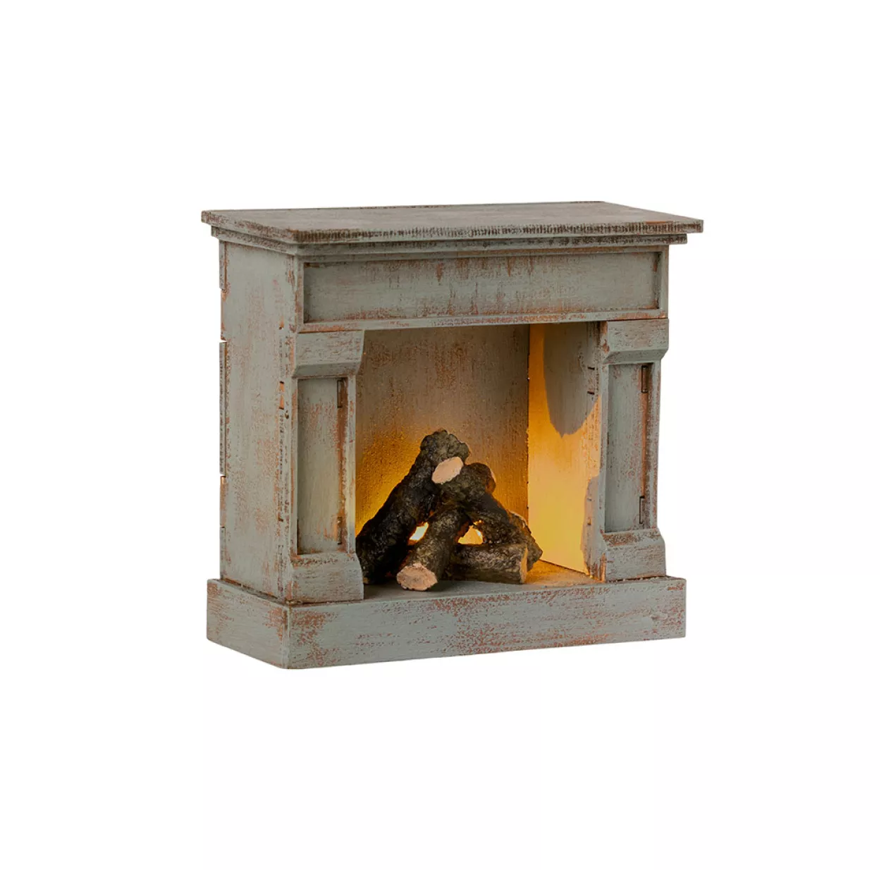 Cette cheminée miniature a été conçue pour les souris et lapins Maileg. Rétro et déco, c’est la cheminée incontournable de vos petites créatures Maileg ! On craque pour son look rétro vintage et son foyer qui s’allume pour créer une atmosphère cosy et chaleureuse ! Elle est équipée d’un interrupteur et alimentée avec une pile fournie. Bref, comme toujours chez Maileg, les détails sont soignés. Vous l’aurez compris, cette adorable cheminée appartient au monde miniature de Maileg. Un univers qui rappelle celui de Cendrillon, de Basile Détective ou encore de Ratatouille, tout en minutie, détails et poésie. Il se construit et se complète au fil des années, au fur et à mesure que votre enfant grandit, au fil des collections et de vos envies. Rétro, belles, poétiques et un brin désuètes, les créations Maileg sont des jouets qu’on a plaisir à offrir aux enfants tant ils nous rappellent nos jouets d’antan !