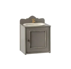 Cette adorable vasque de salle de bain miniature Ă la patine rĂ©tro a Ă©tĂ© conçue pour les souris et lapins Maileg. Vintage et dĂ©co, c’est le meuble de salle de bain incontournable de vos petites crĂ©atures Maileg ! Le meuble de salle de bain Maileg est Ă©quipĂ© d’une robinetterie dorĂ©e, d’une plainte dĂ©corative et d’un placard de rangement. Son placard s’ouvre, vous pouvez lui associer l’Ă©tagère murale dans la mĂŞme patine vert de gris. Bref, comme toujours chez Maileg, les dĂ©tails sont soignĂ©s. Vous l’aurez compris, ce meuble de salle de bain appartient au monde miniature de Maileg. Un univers qui rappelle celui de Cendrillon, de Basile DĂ©tective ou encore de Ratatouille, tout en minutie, dĂ©tails et poĂ©sie. Il se construit et se complète au fil des annĂ©es, au fur et Ă mesure que votre enfant grandit, au fil des collections et de vos envies. RĂ©tro, belles, poĂ©tiques et un brin dĂ©suètes, les crĂ©ations Maileg sont des jouets qu’on a plaisir Ă offrir aux enfants tant ils nous rappellent nos jouets d’antan !