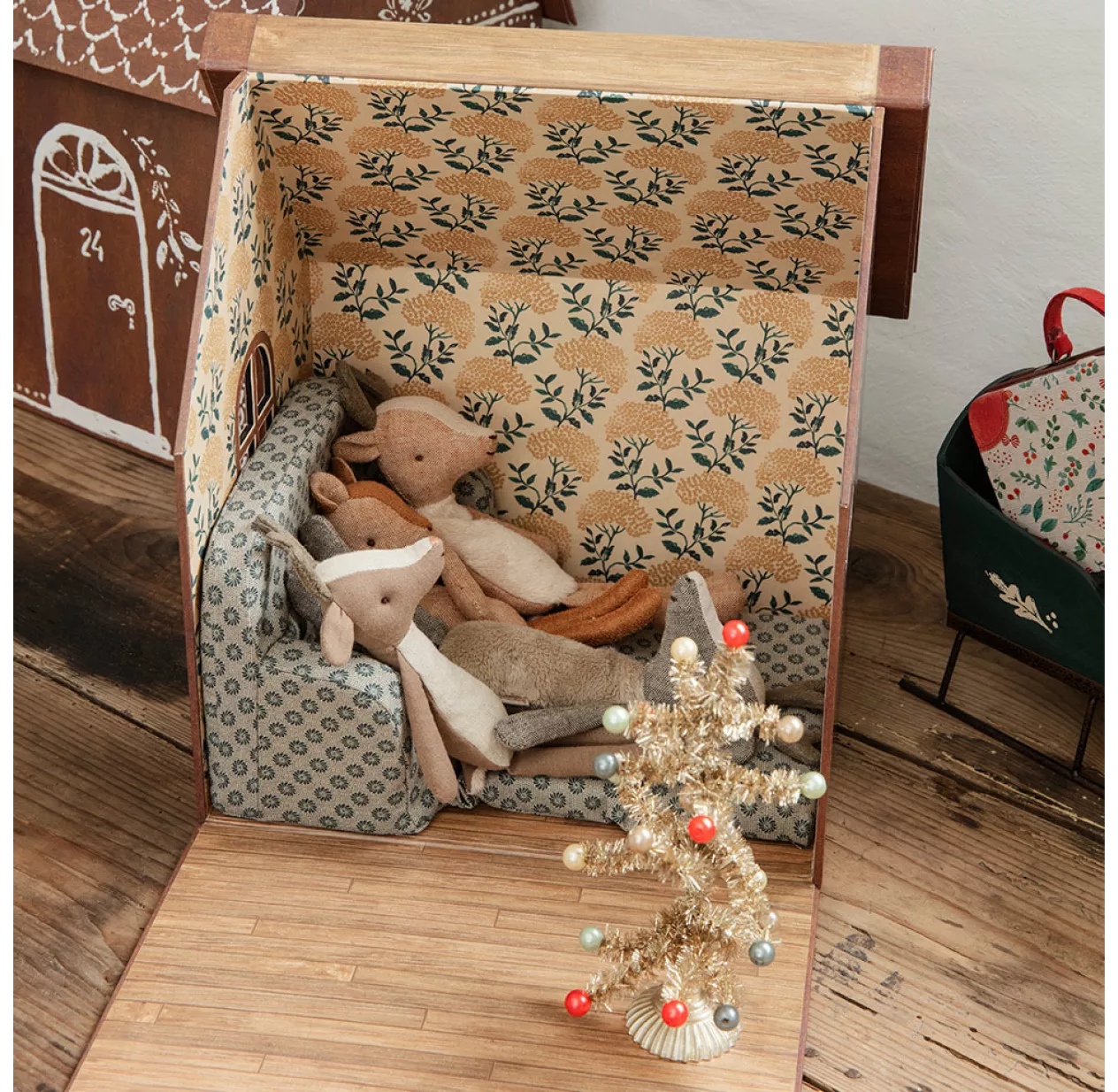 Maileg est une marque danoise créée en 1999 par la designer Dorthe Mailil. Connue pour ses illustrations poétiques très reconnaissables, Dorthe imagine des collections de jouets uniques et authentiques, à l’image de son univers graphique. Le monde merveilleux de Maileg ressemble à une forêt enchantée peuplée de lutins, de rennes et biches endormis, de petites souris, de grands lapins et même de chats et chiens.