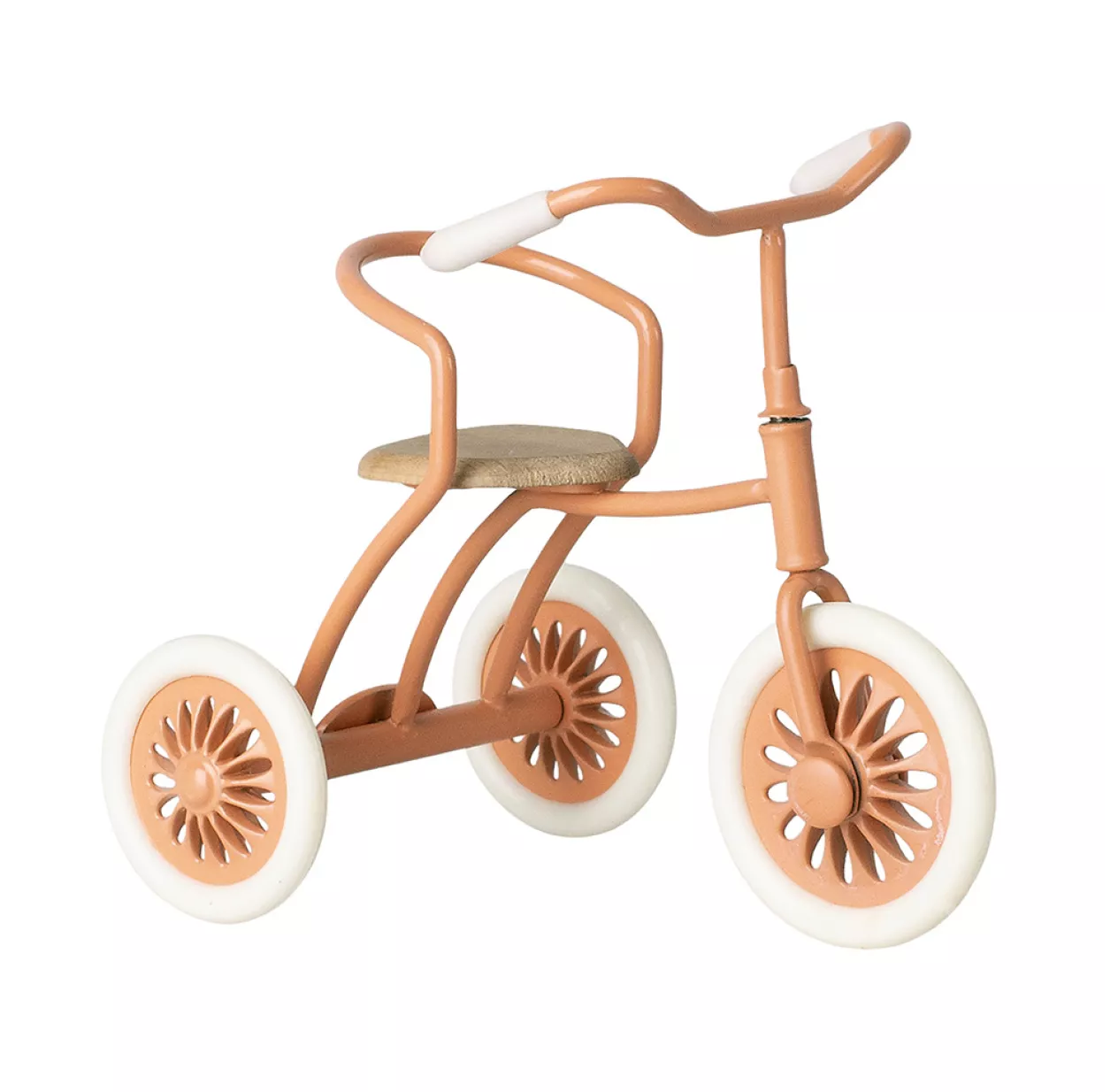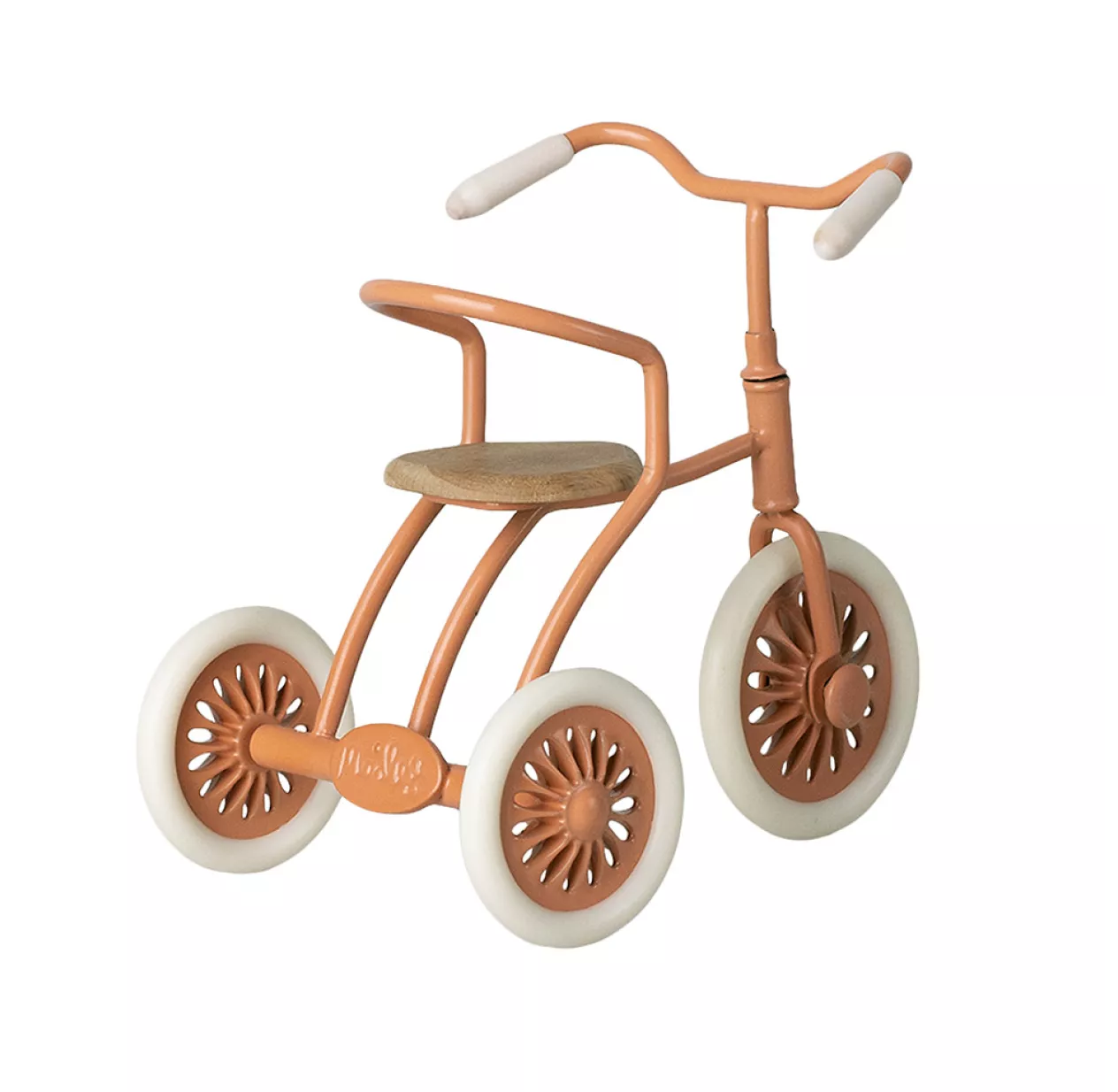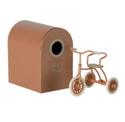 Coup de coeur pour cet adorable tricycle miniature imaginé pour les petites souris Maileg ! Il est livré avec son abri pour rester toujours au sec. Rétro et déco, c’est le parfait moyen de locomotion pour se rendre à l’école. Un panier à vélo amovible est disponible en option. On craque pour son look un brin désuet. Comme toujours chez Maileg, les détails sont soignés. Vous l’aurez compris, ce petit tricycle appartient au monde miniature de Maileg. Un univers qui rappelle celui de Cendrillon, de Basile Détective ou encore de Ratatouille, tout en minutie, détails et poésie. Il se construit et se complète au fil des années, au fur et à mesure que votre enfant grandit, au fil des collections et de vos envies. Rétro, belles, poétiques et un brin désuètes, les créations Maileg sont des jouets qu’on a plaisir à offrir aux enfants tant ils nous rappellent nos jouets d’antan !
