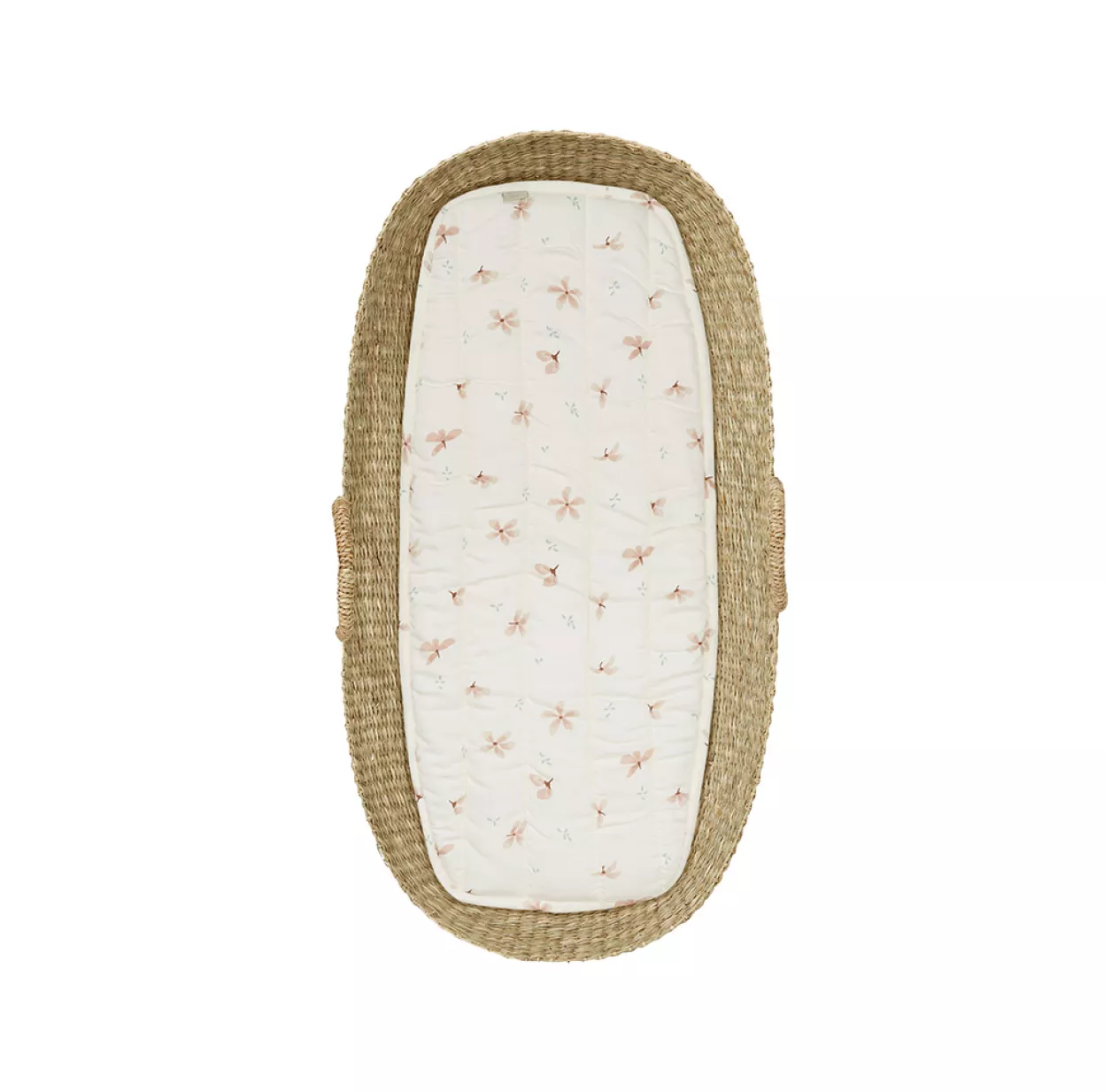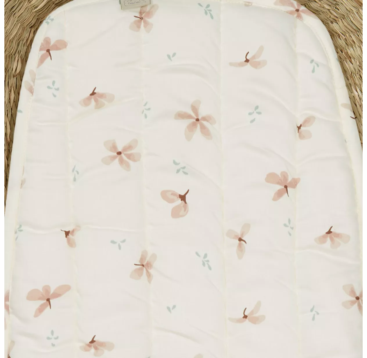 Le matelas à langer ovale Cam Cam se pare du délicat imprimé Anémones. En coton biologique et polyester certifié Oeko-Tex, il a été conçu pour s’adapter parfaitement au panier à langer tressé de Cam Cam.