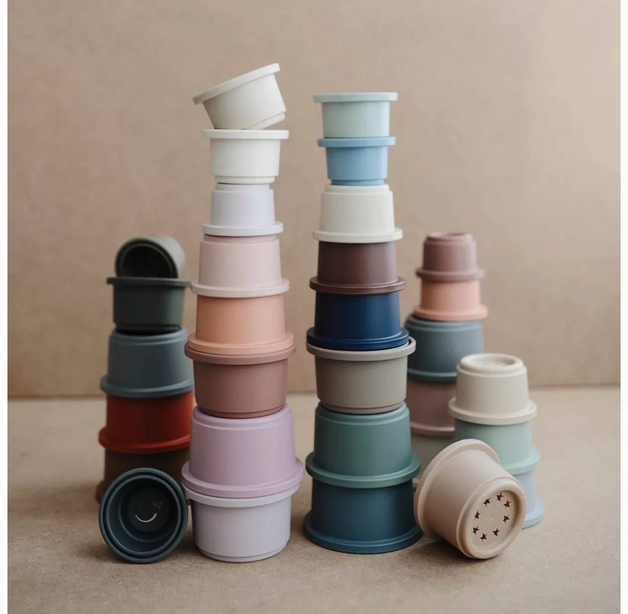 La tour à empiler Petal de Mushie est constituée de 8 jolis gobelets à superposer. Sa subtile palette de couleurs rétros et pastel en fait un très beau jouet d’éveil. La tour à empiler Mushie développe l’habileté, le sens de l’organisation et la motricité fine de votre bébé de sa naissance à 3 ans environ. Un jouet à utiliser aussi bien dans l’eau que sur un tapis de jeu. Petit plus graphique et ludique : certains gobelets sont percés de formes poétiques: arc-en-ciel, étoiles ou encore spirales.