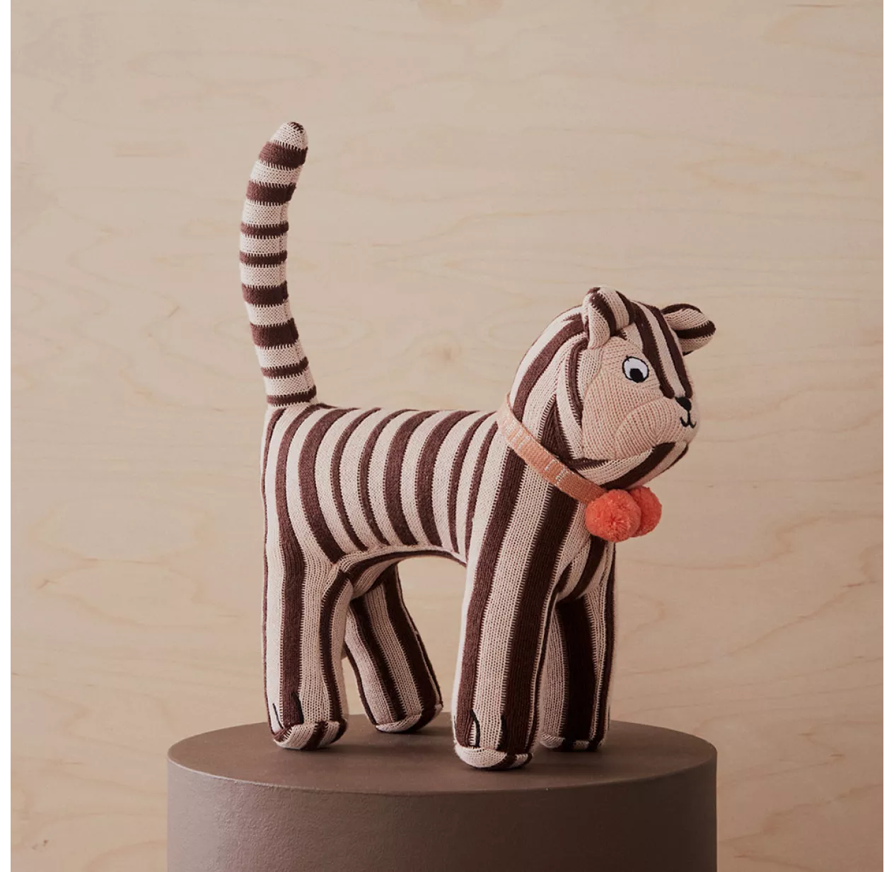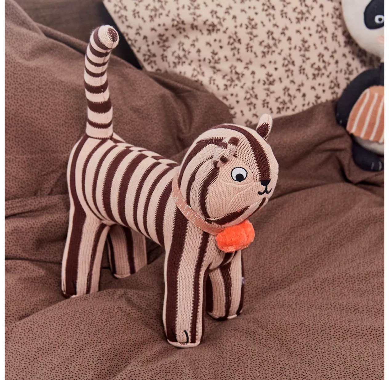 Dans la famille OYOY, Mimi est un adorable chat rayé élégamment paré d’un collier à pompons. Son pelage de tricot brun et beige tout doux en fait un parfait compagnon pour la sieste des kids. Il est en même temps un confortable coussin déco pour la chambre des enfants. Son petit air pataud nous a fait craqué, on a immédiatement eu envie de l’adopter. Et vous ?