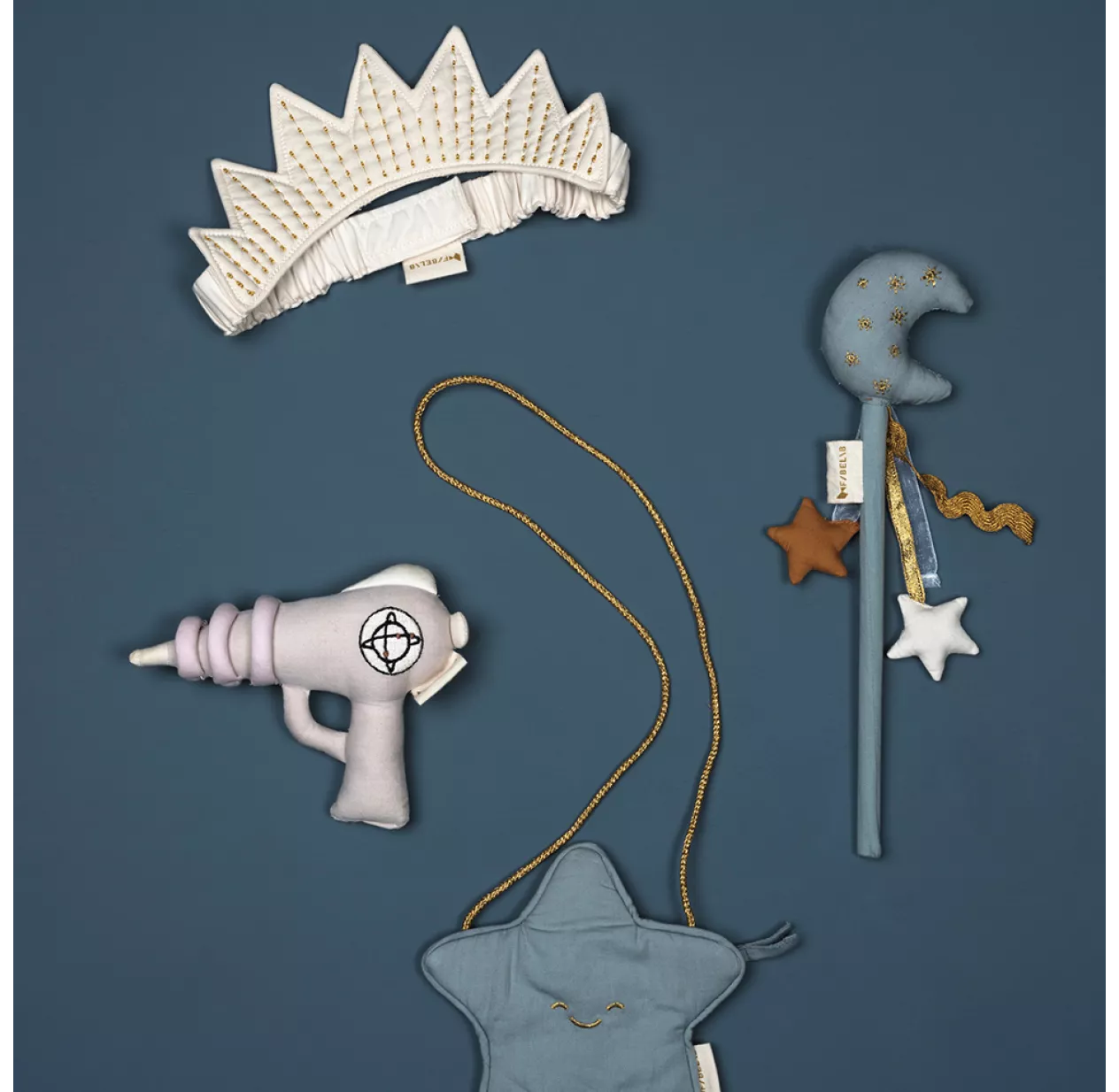 Voici l’arme des plus grands héros et héroînes de l’espace ! Ce pistolet laser en coton bio a été dessiné pour s’associer aux costumes de princesse de l’espace et d’astronaute Fabelab. A porter comme ça pour un Mardi Gras décontacté à l’école, ou en total look avec la parure complète !