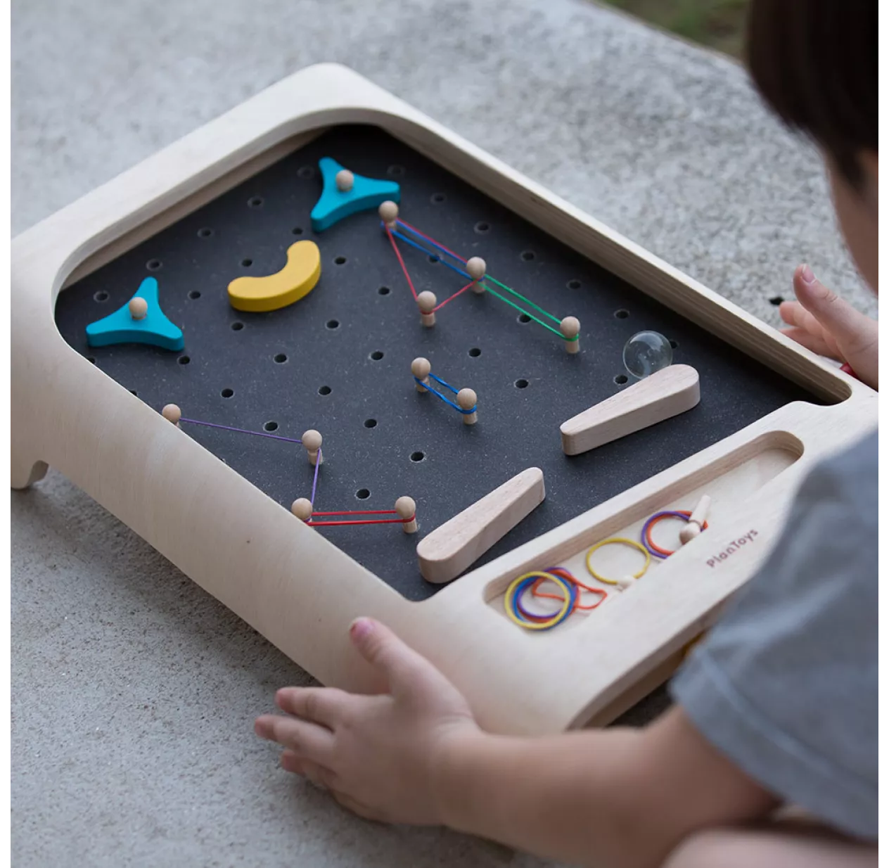 Son premier flipper ! Coup de coeur pour le flipper en bois de Plan Toys. Comme un vrai flipper, la tirette du bas permet de lancer la balle. L’objectif: Maintenir la balle en jeu le plus longtemps possible en appuyant sur les boutons rouge de chaque côté pour contrôler les « flippers » et diriger la balle à travers les obstacles. Les enfants peuvent créer plus de défis et augmenter la difficulté en ajustant la position de tous les obstacles : en déplaçant les tiges de bois et en fixant les élastiques de différentes manières. Ils peuvent également viser la barre incurvée jaune, puis tirer sur les boutons jaunes pour l’incliner et laisser la balle retomber. Comme tous les produits de la marque, ce flipper enfant est un jeu éducatif, écologique, éthiques, esthétique et respectueux de l’environnement. Il est fabriqué à partir d’arbre à caoutchouc : l’Hévéa.