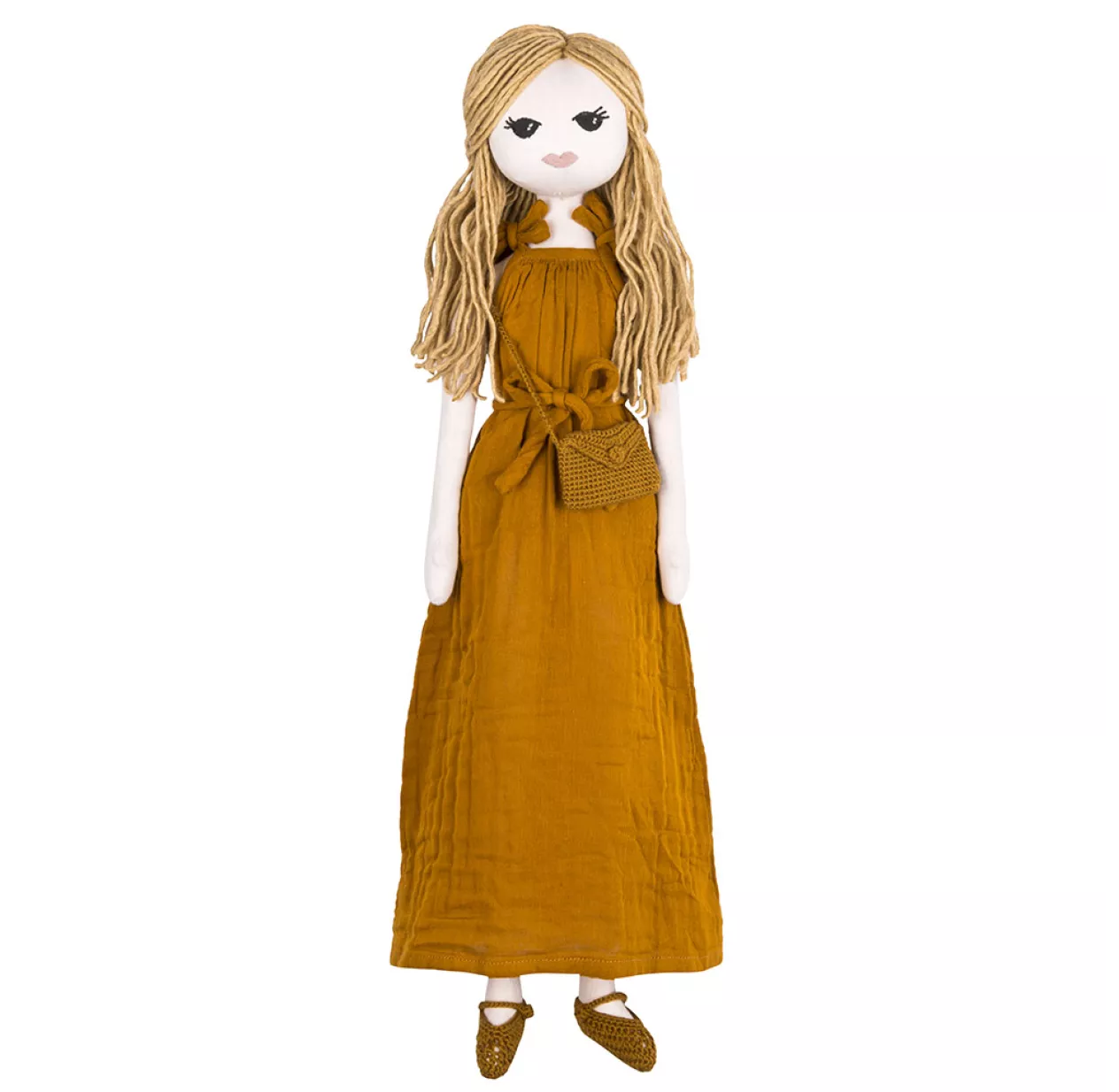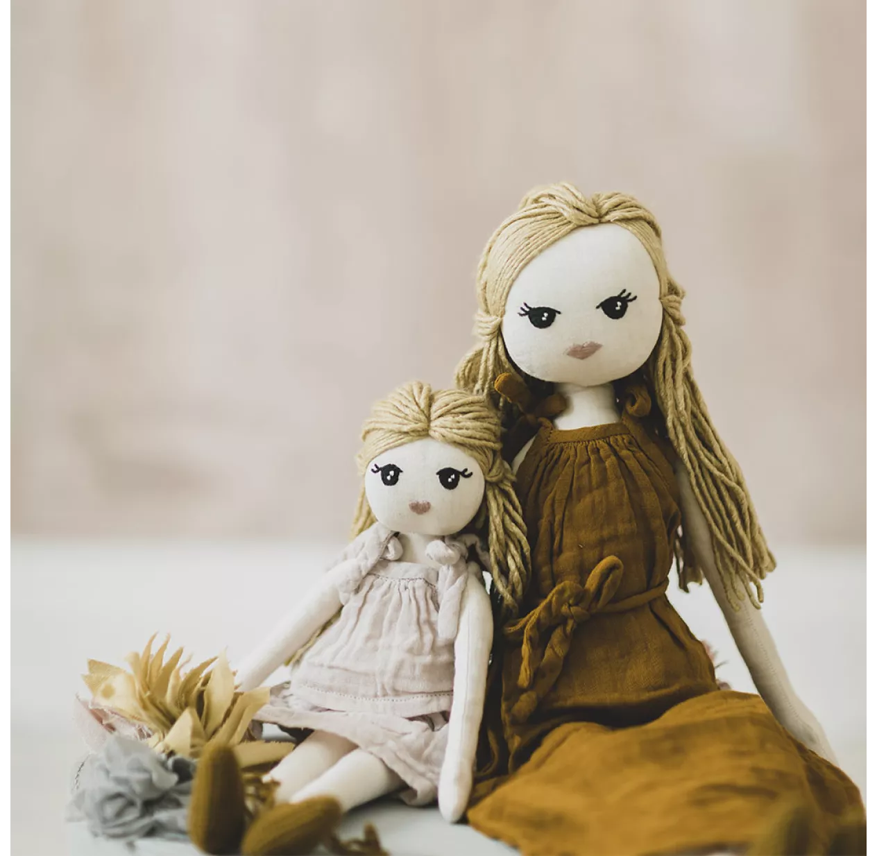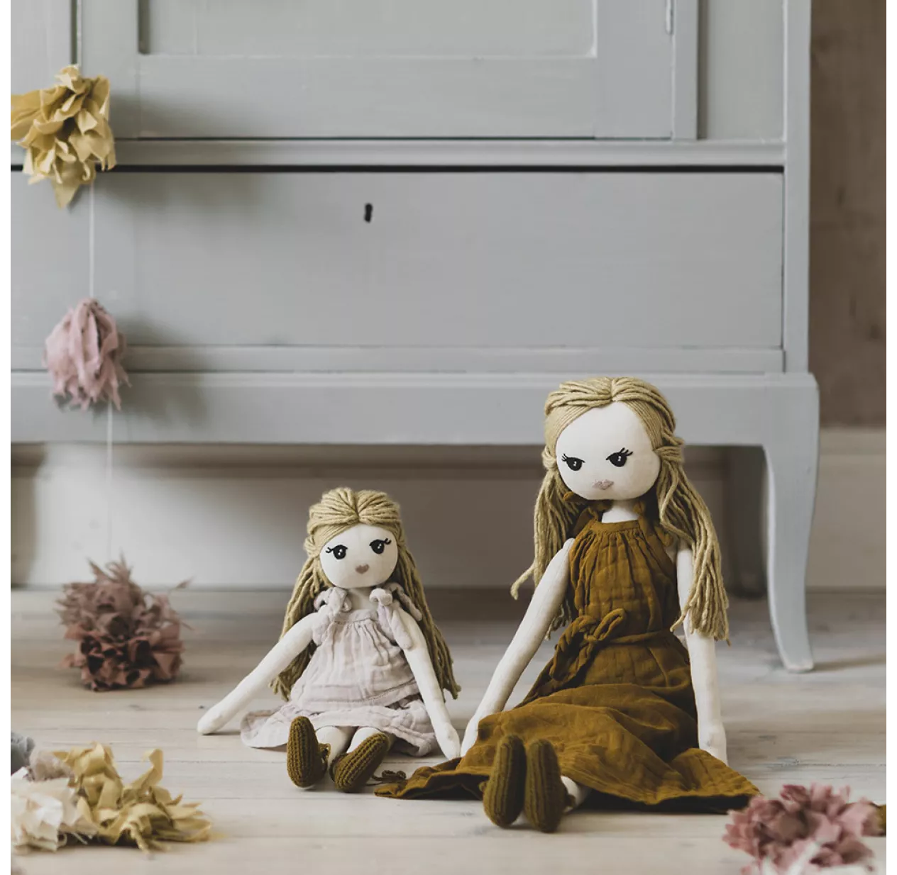 Lea est une adorable poupée en coton biologique entièrement réalisée à la main. Ses cheveux sont en laine et soie, les traits de son visage sont brodés, ses chaussures et son sac à main sont crochetés main. Elle est revêtue d’une longue robe et d’un bloomer en coton bio. Lea est la maman de la poupée Stella de Numéro 74. La poupée Lea est un jouet artisanal et unique qui vise à promouvoir des savoir-faires anciens et à les préserver. C’est aussi un très bel objet décoratif qui trouvera sa place dans toutes les chambres de petites filles.