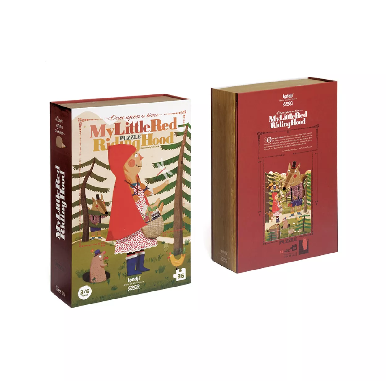 Le puzzle My Little Red de Londji est un magnifique puzzle de 36 pièces. « Il était une fois une petite fille de village, la plus éveillée qu’on eût su voir : sa mère en était folle, et sa mère-grand plus folle encore. Cette bonne femme lui fit faire un petit chaperon rouge qui lui seyait si bien, que partout on l’appelait le petit Chaperon rouge ». Ce puzzle Chaperon Rouge, magnifiquement illustré par Txell Darne, convient à l’enfant de 3 à 6 ans. Comme toutes les créations de la marque Londji, le puzzle My Little Red est réalisé de manière éco-responsable en carton recyclé.