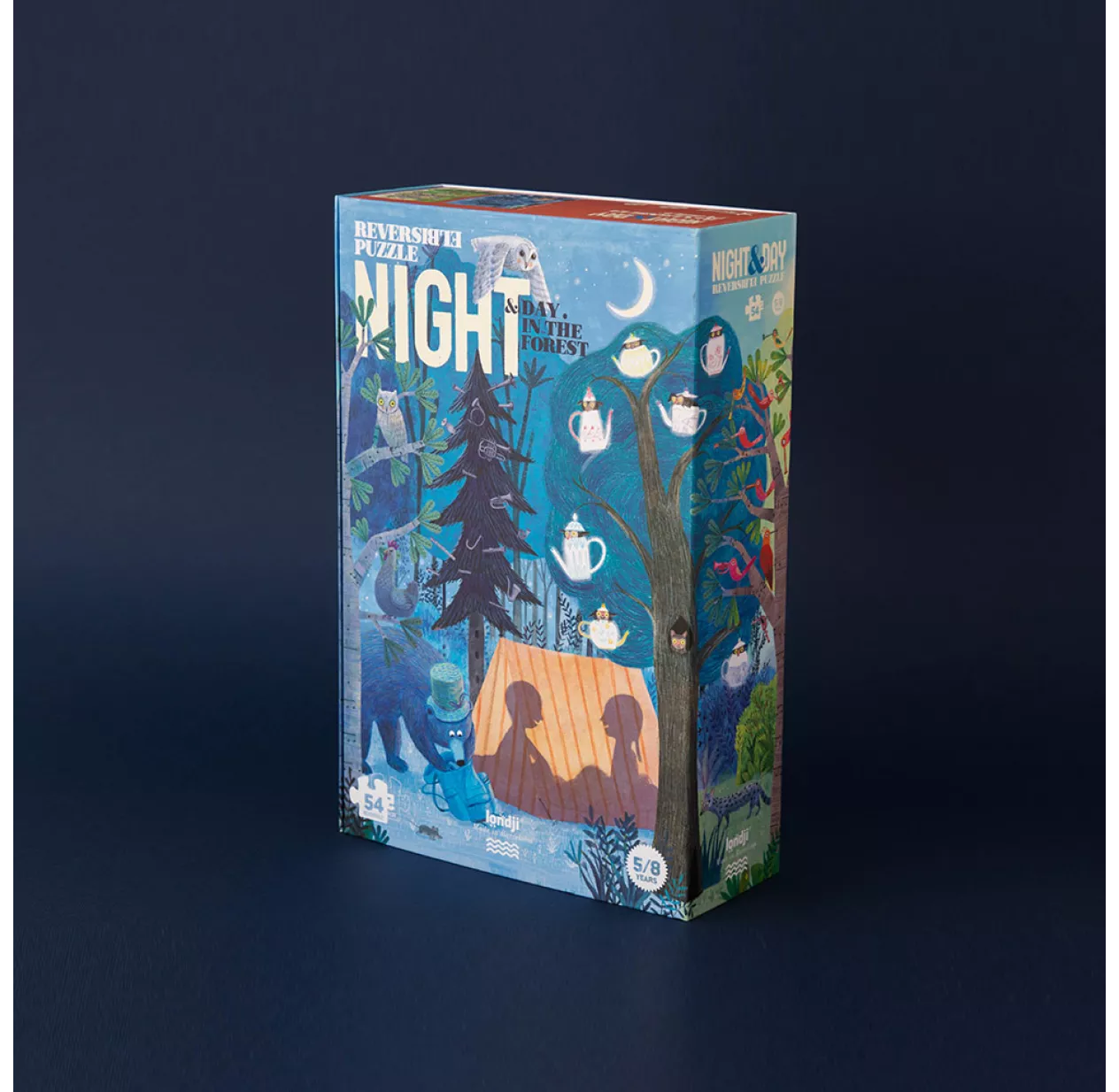 Le puzzle Night & Day de Londji est un puzzle de 54 pièces réversible représentant une scène à la campagne : D’un côté, c’est le jour, et de l’autre, la nuit. Un très beau puzzle illustré par Mar Ferrero et habité par de nombreuses créatures à observer. Vos enfants passeront des heures à les observer !