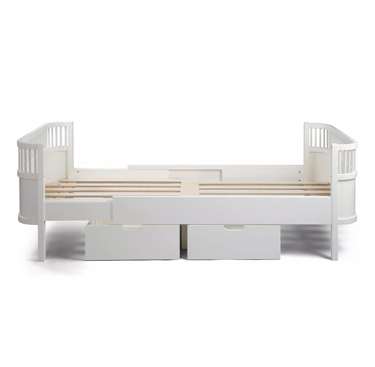 Le lit évolutif Sebra s’associe au matelas et au tiroir de rangement vendus séparément.