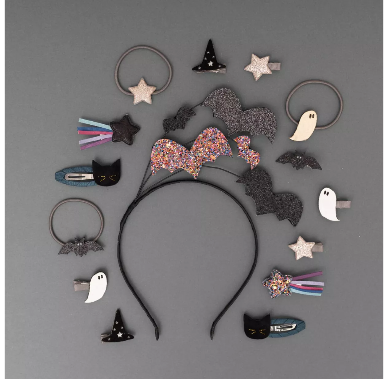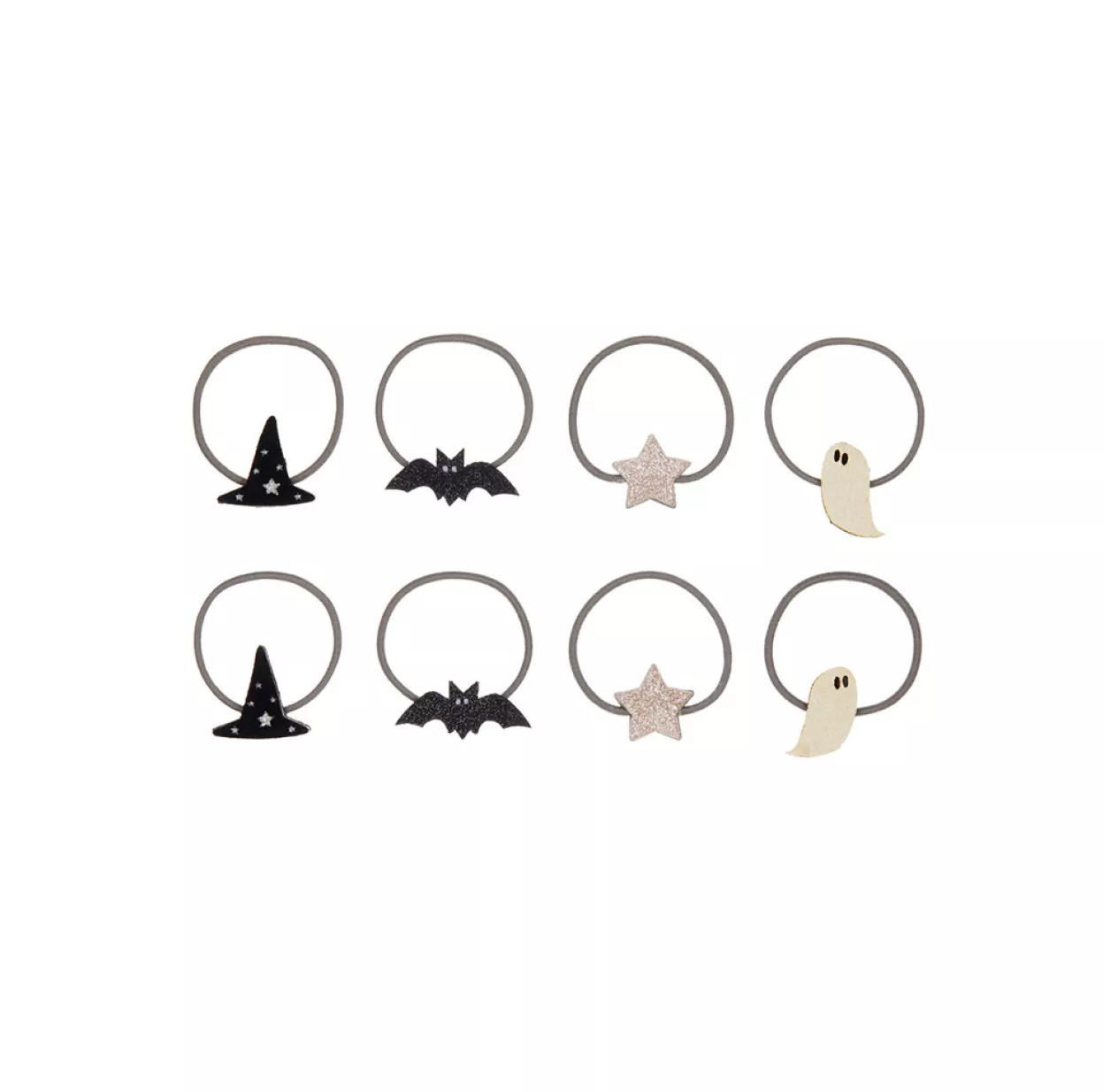 Ce set de 8 élastiques à cheveux sur le thème d’Halloween est orné de chauve-souris, de fantômes, de chapeaux de sorcier et d’étoiles. Un accessoire terrifiant pour paufiner vos tenues d’Halloween ! Il convient aux têtes ensorcelées dès 3 ans dès lors qu’elles ont des cheveux !