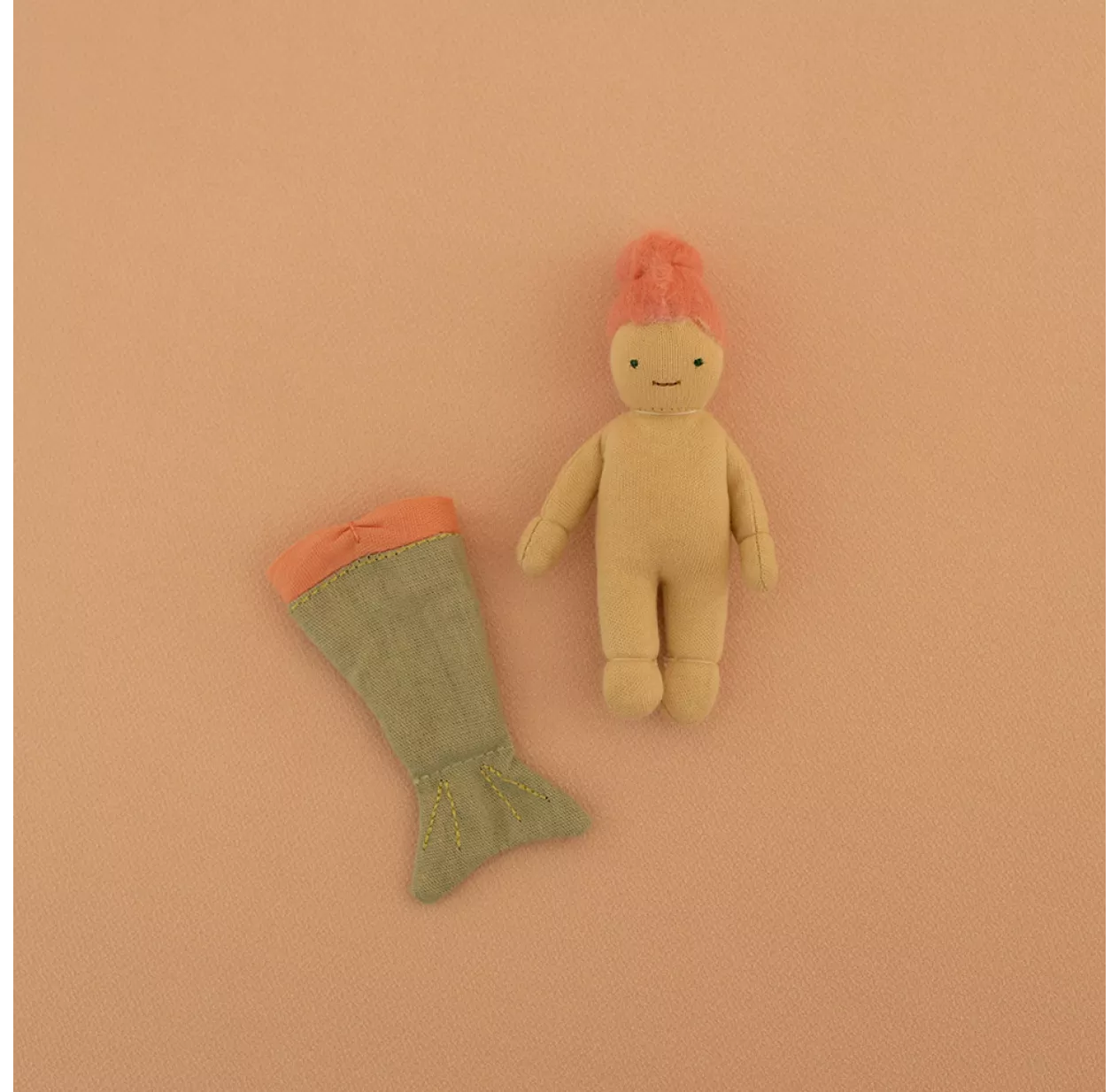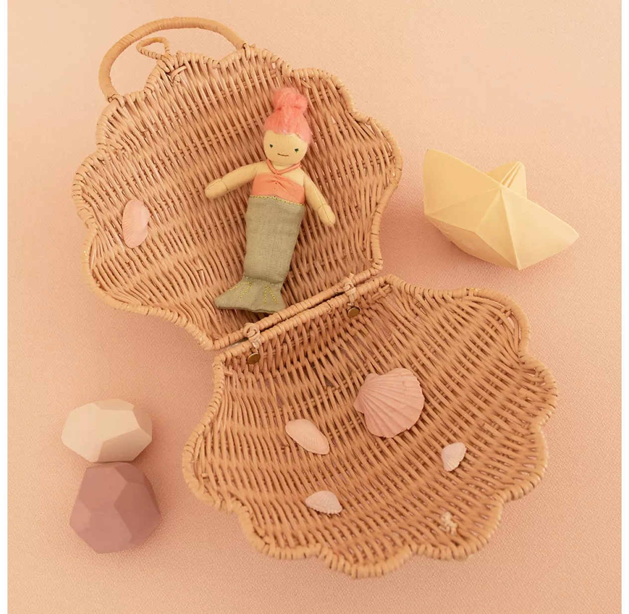 La petite sirène Olli Ella appartient à l’univers Folk des petits personnages peuplant les maisons de poupées Holdie, Casa et Coquillage. En coton et laine, la sirène Coral est entièrement articulée. Elle mesure 11 cm de haut et convient aux enfants dès 3 ans. Sa queue de sirène est amovible et Coral peut revêtir les vêtements de poupée Holdie Folk classique. Elle est livrée dans une jolie boîte d’alumettes qui en fait un parfait coffret cadeau. A associer absolument à l’adorable valisette Coquillage Olli Ella.