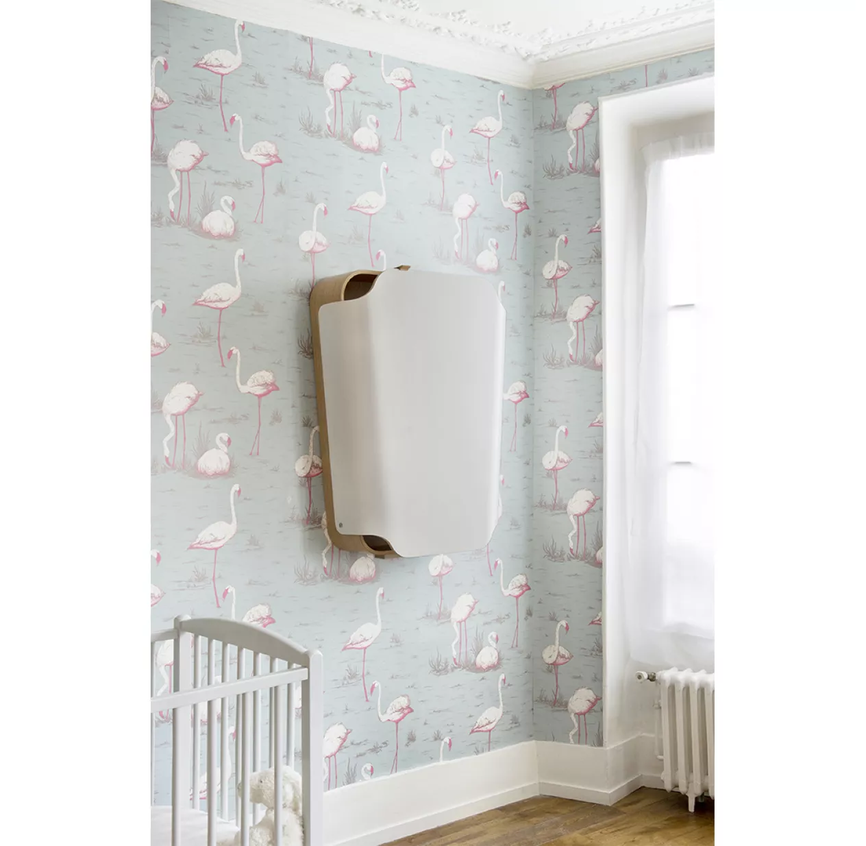 Lorsque la table à langer NOGA est fermée son design arrondi et trapézoïdal ne laisse personne indifférent. Une fois ouverte, elle offre tout le confort nécessaire et vous permet de ranger les petites affaires de toilette de bébé sans le quitter des yeux un instant.