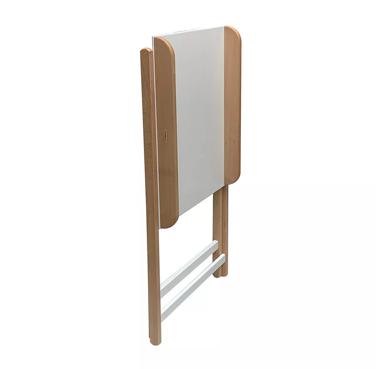 La table à langer pliable Jade de Combelle se plie et se replie en un rien de temps. Idéale pour les petits espaces, pour équiper une location de vacances ou un hôtel, elle offre un encombrement minimum une fois repliée. Elle est réglable en 2 hauteurs pour vous offrir un confort optimal à l’utilisation. Ses dimensions standards vous permettent de lui associer le matelas à langer de votre choix. Elle convient aux bébés de la naissance jusqu’à 12 mois ou 11kg maximum. Nous avons sélectionné la table à langer pliante Jade de Combelle pour sa qualité de conception, son design sobre, son prix attractif et sa fabrication 100% française ! Autre atout et non des moindres, le bois de hêtre utilisé pour la fabrication de la table à langer Jade de Combelle provient de la filière bois du Cantal et départements limitrophes. Il en ressort une gestion forestière responsable compatible avec les équilibres écologiques (certification PEFC).