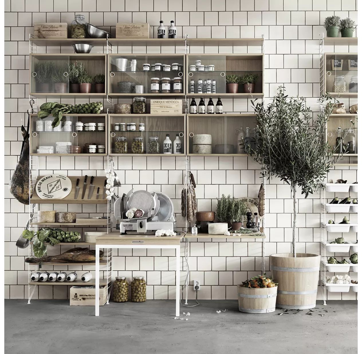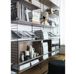 Vous pouvez également rajouter les caissons de rangement, les étagères pour magazines, les étagères métalliques ou en bois et tous les autres rangements modulables String. Vous pouvez aussi mélanger les couleurs.