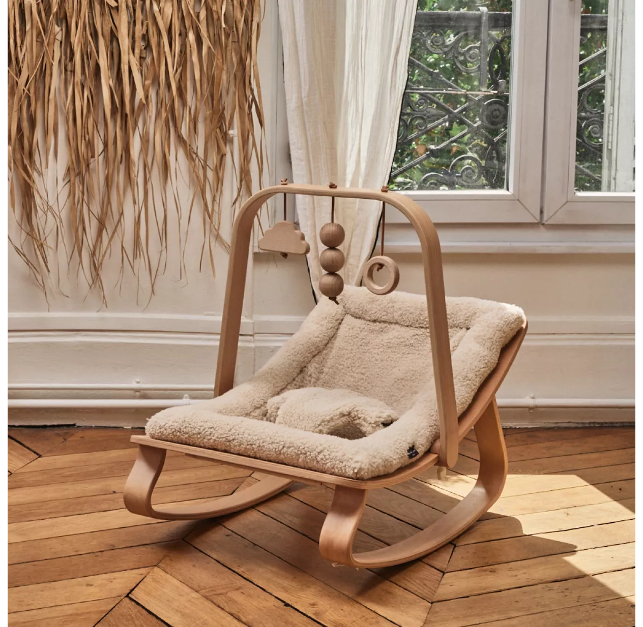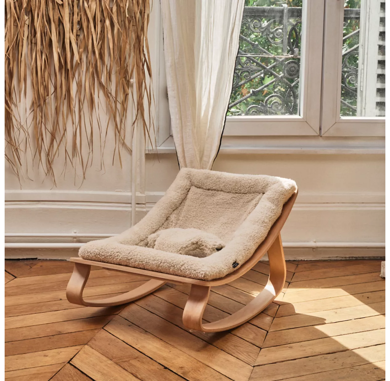 Le transat LEVO en fourrure et multiplis de hêtre de Charlie Crane bercera votre bébé de la naissance à ses 7 mois environ, il s’intègrera parfaitement à votre intérieur. Sa conception en bois de hêtre multiplis et son look design ne ressemblent en rien au mobilier pour bébé. Son balancement naturel s’adapte aux mouvements de l’enfant, et ce, tout en douceur. Dans cette nouvelle version, le transat Levo s’utilise jusqu’à 7 mois avec son harnais et jusqu’à 5 ans sans ce dernier. Son assise est ajustable grâce à des pressions et en 2 positions différentes.