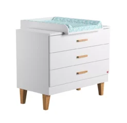 – à noter, que le plan à langer dépasse d’environ 6 cm à l’avant et de 15 cm à l’arrière de la commode.